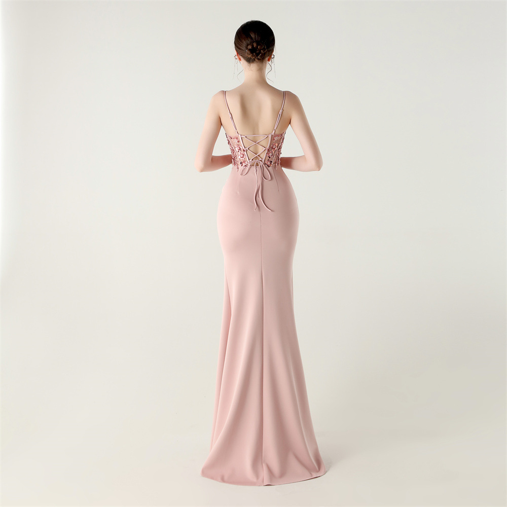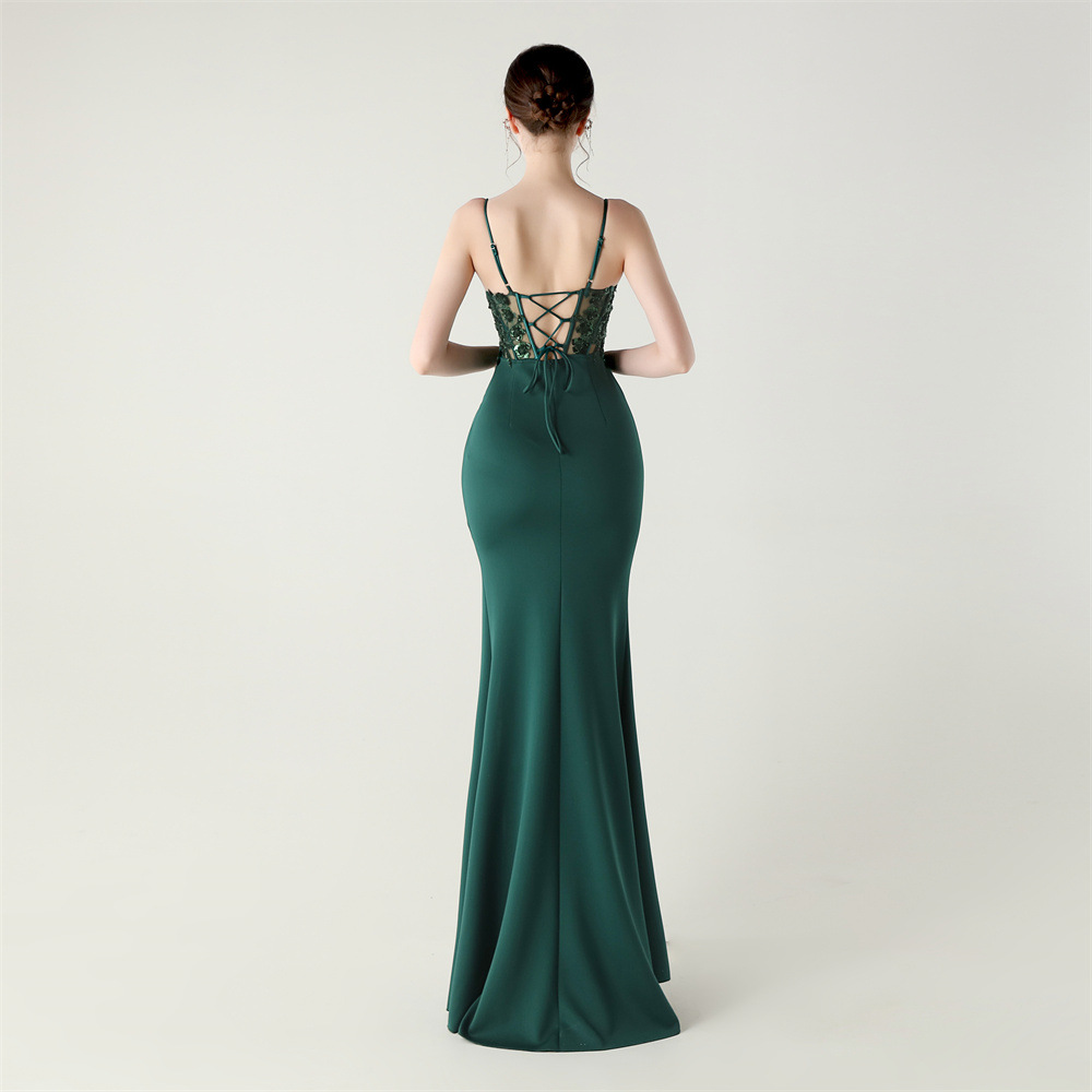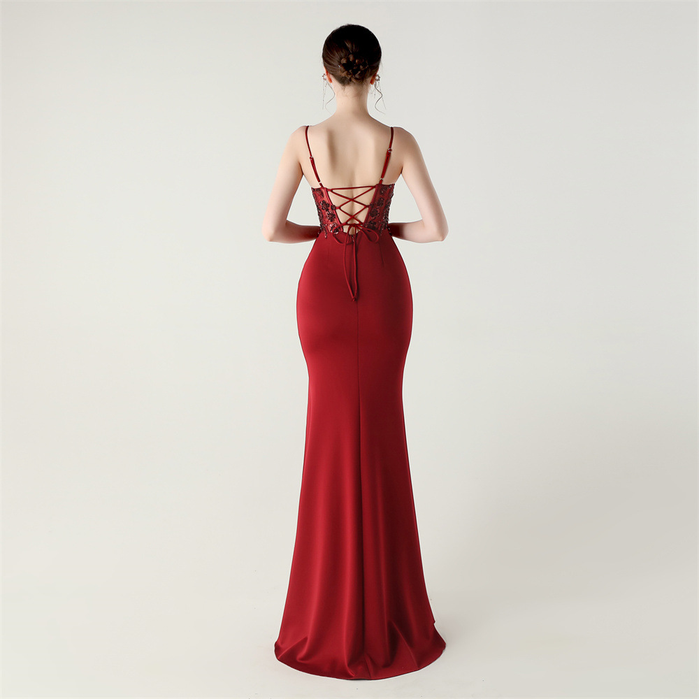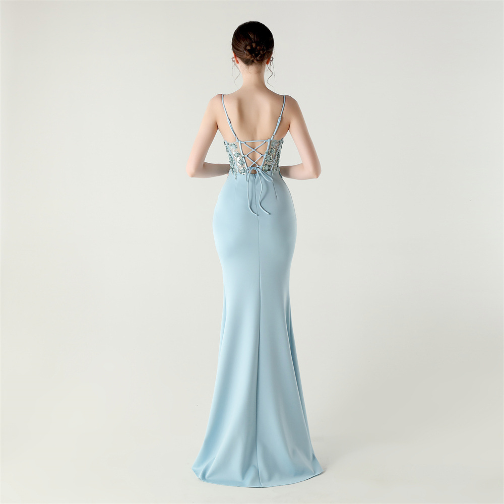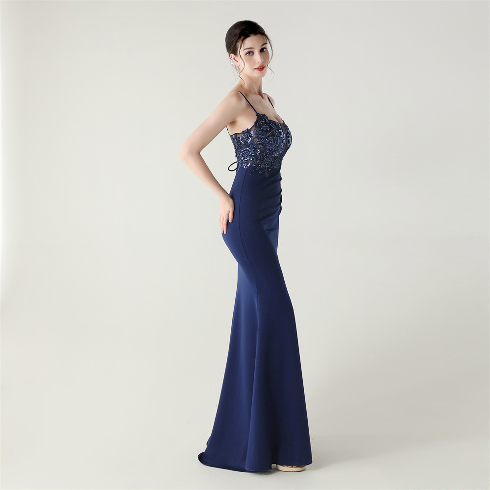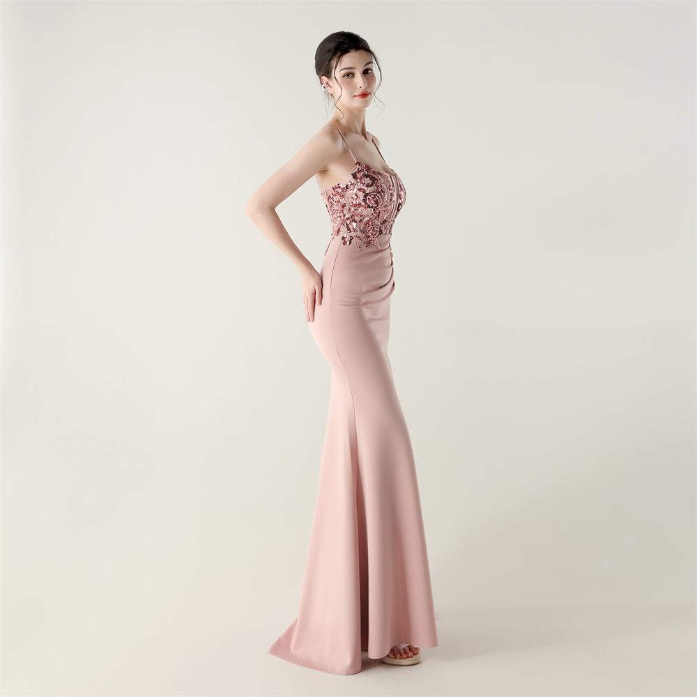 Sequin & Polyester Slim Long Evening Dress side slit PC