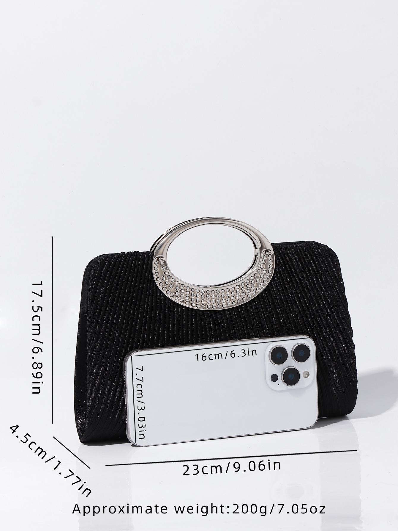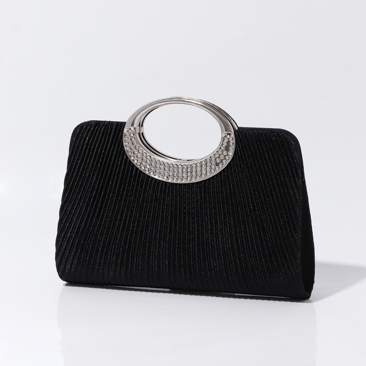 Silk hard-surface & Pleat Clutch Bag with rhinestone Polyester PC