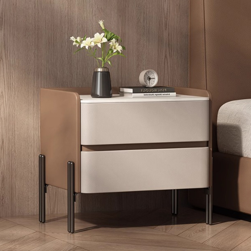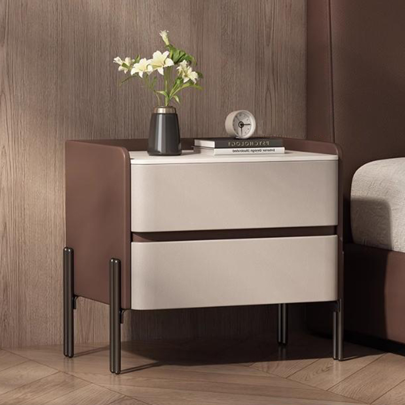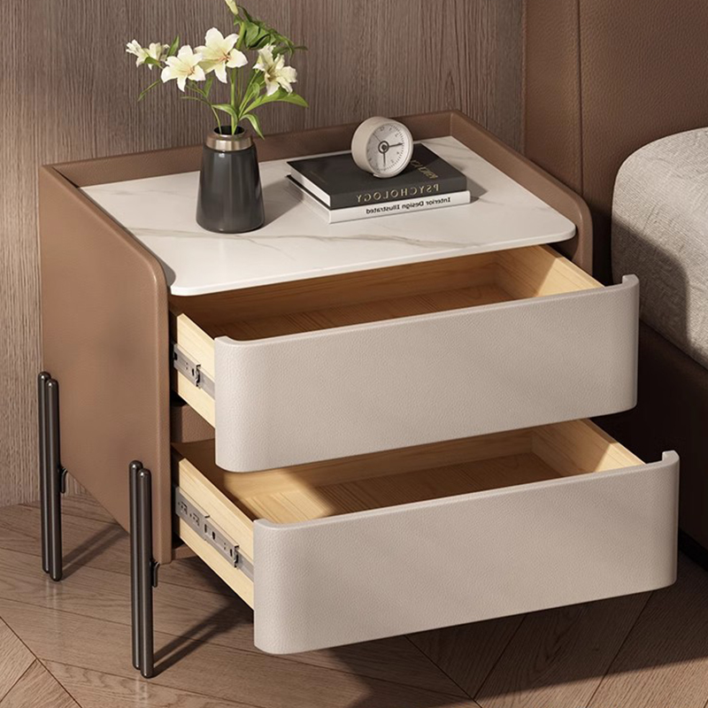 Sintered Stone & Microfiber Leather & Carbon Steel & Solid Wood Bedside Cabinet dustproof PC