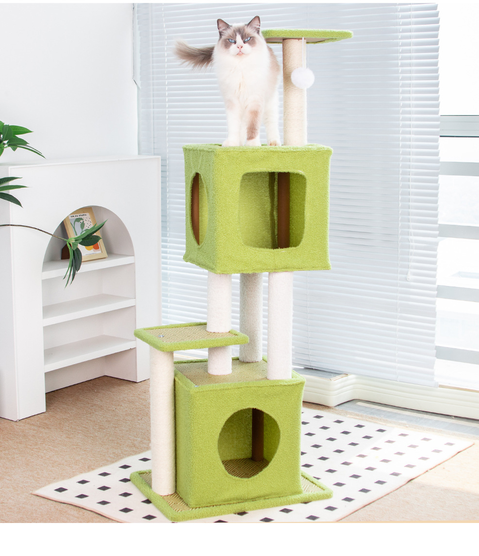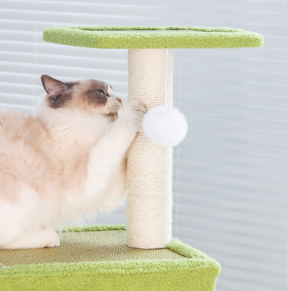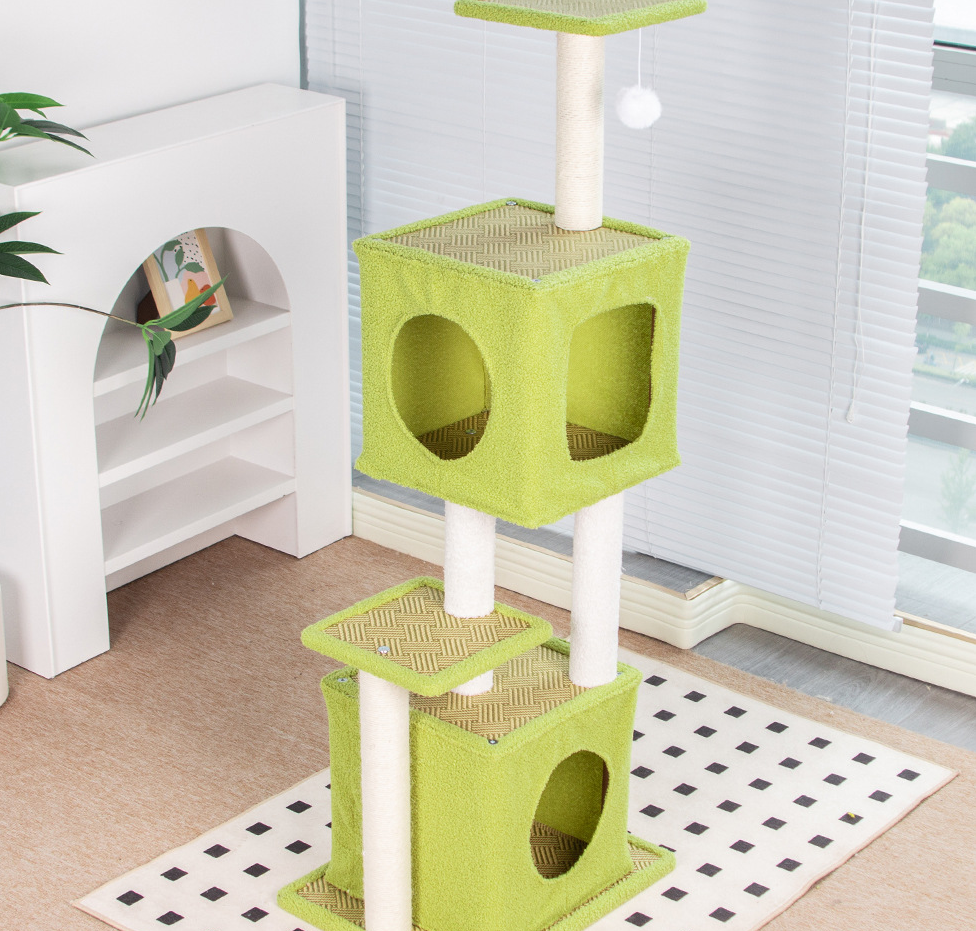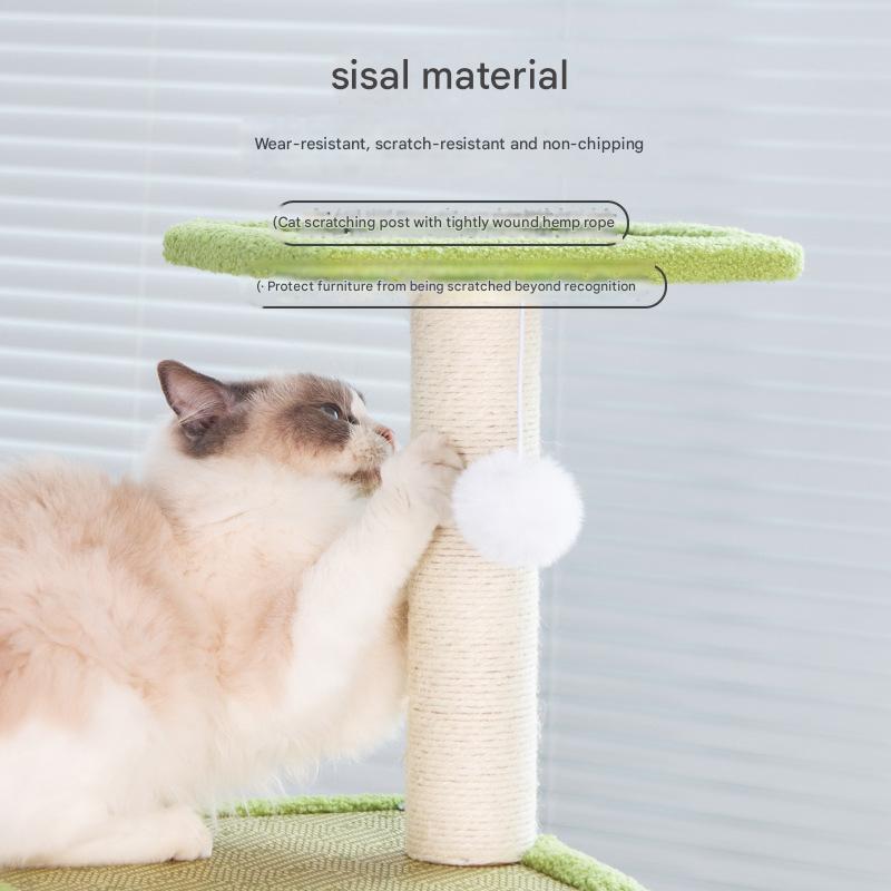 Sisal Hemp & Medium Density Fiberboard & Rattan Multifunction Cat Climbing Frame hardwearing green PC
