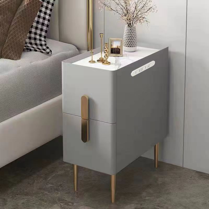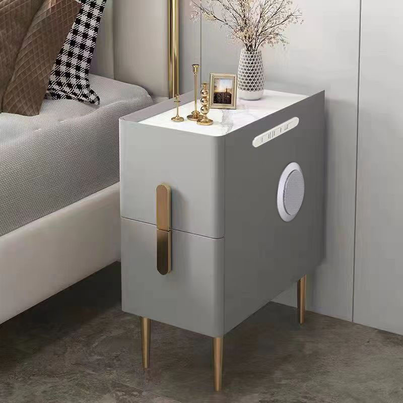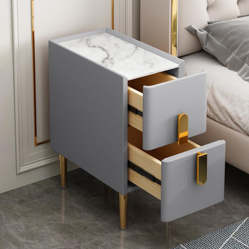 Solid Wood thermostability Bedside Cabinet for storage & hardwearing Sintered Stone & Microfiber Leather PC