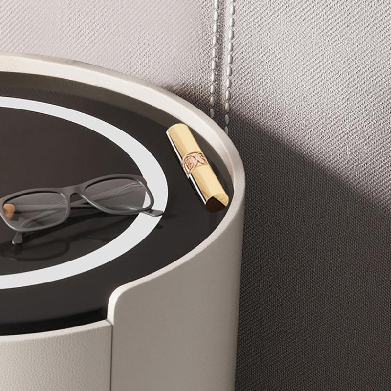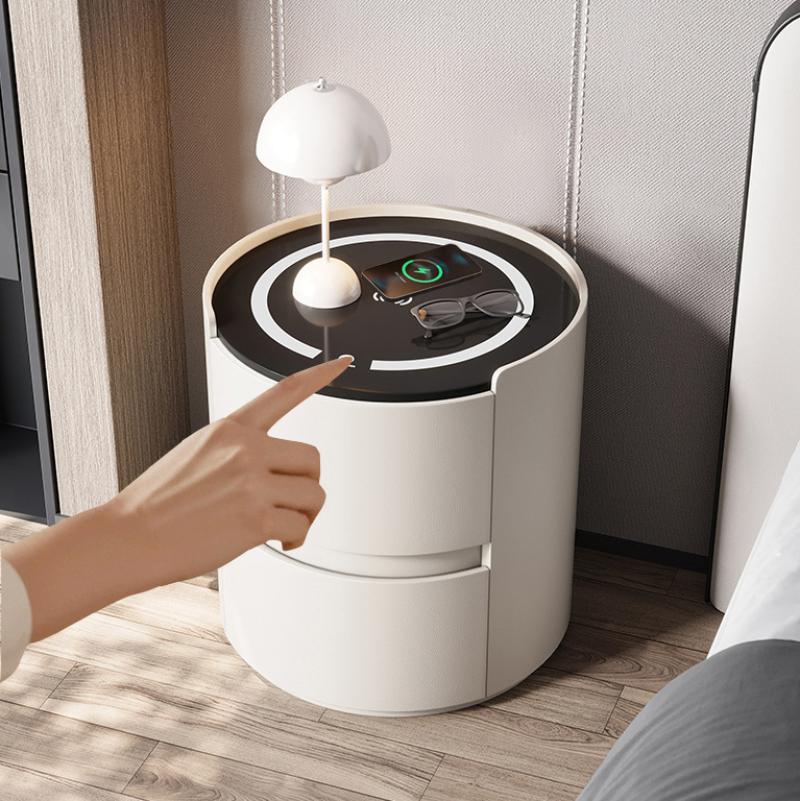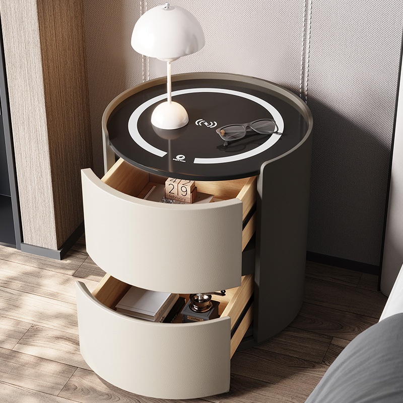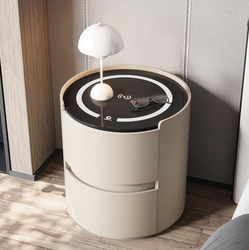Solid Wood Wireless Charger & thermostability Bedside Cabinet for storage & hardwearing Scratch-Resistant Fabric & Toughened Glass PC