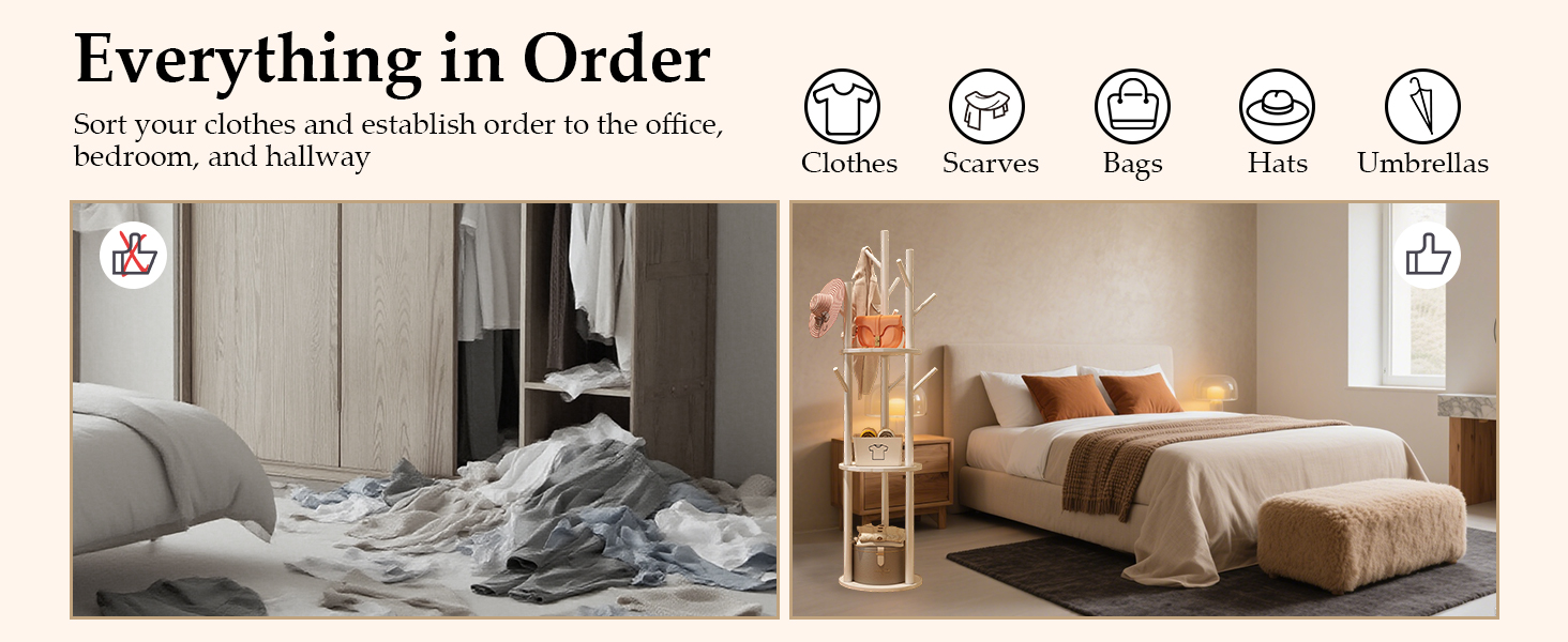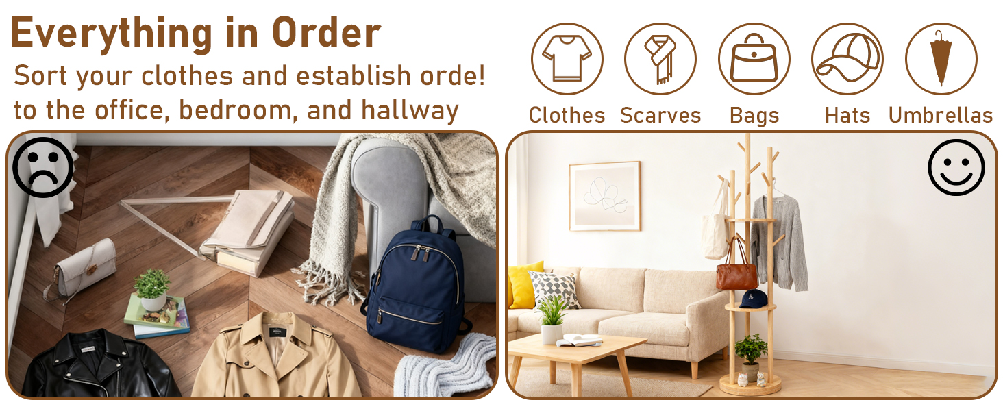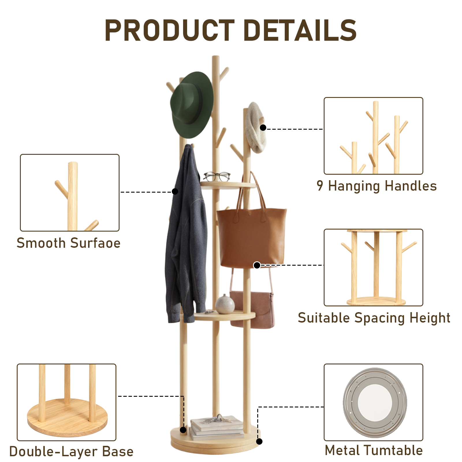 Solid Wood Multifunction Clothes Hanging Rack durable PC