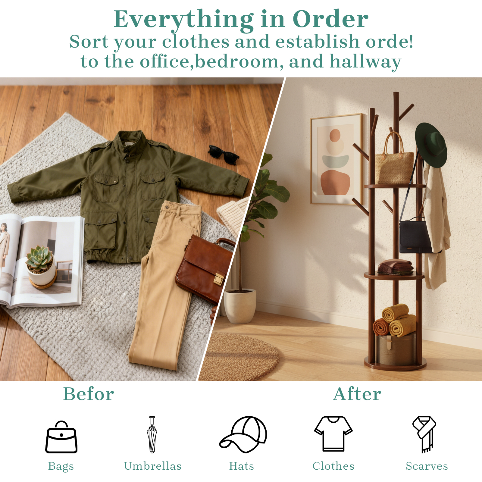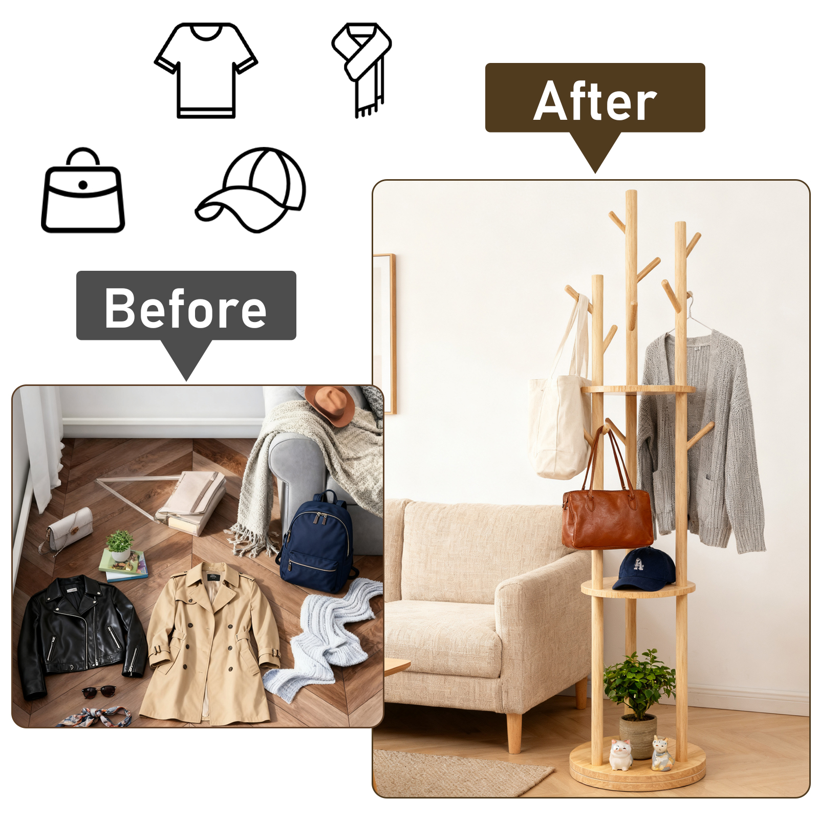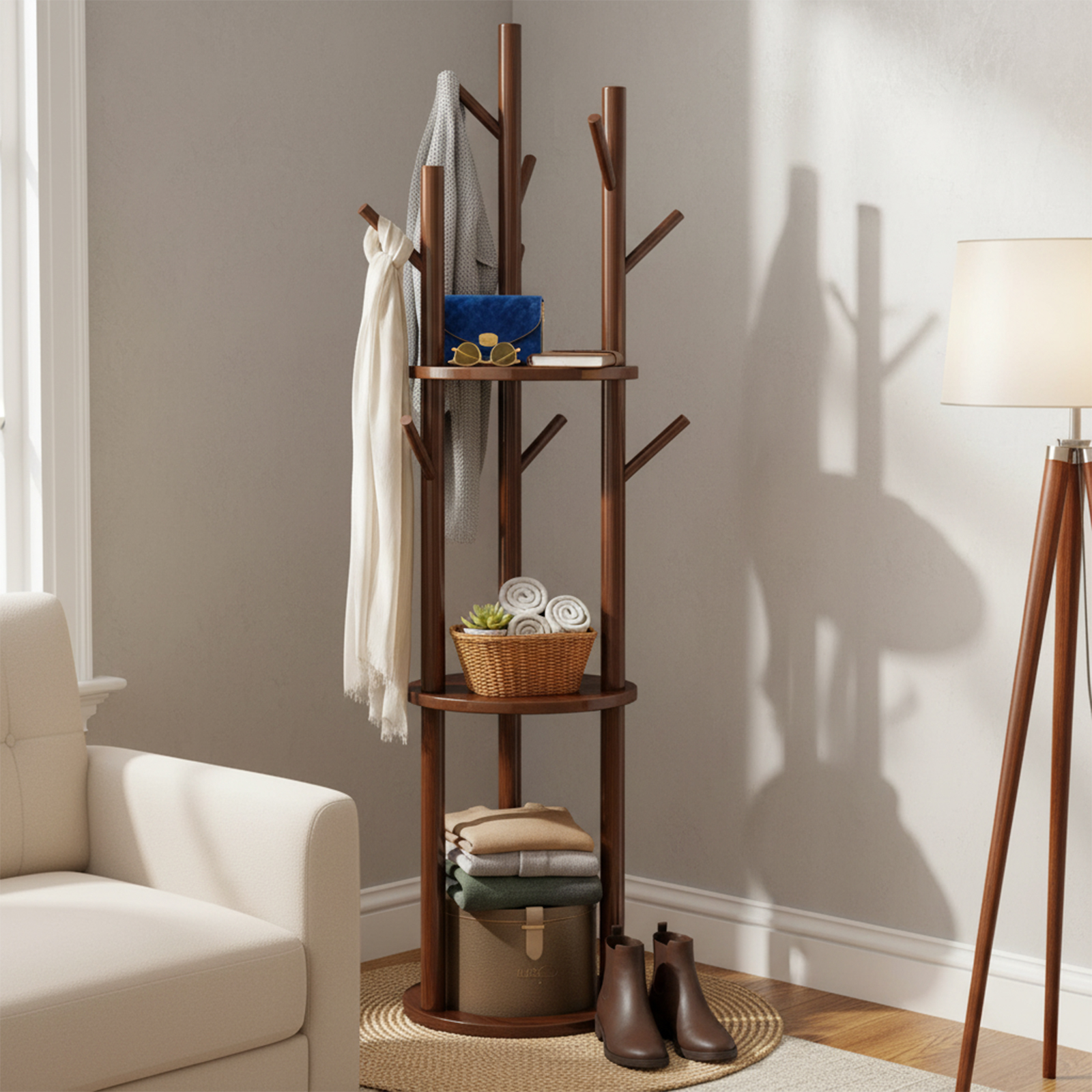 Solid Wood Multifunction Clothes Hanging Rack durable PC