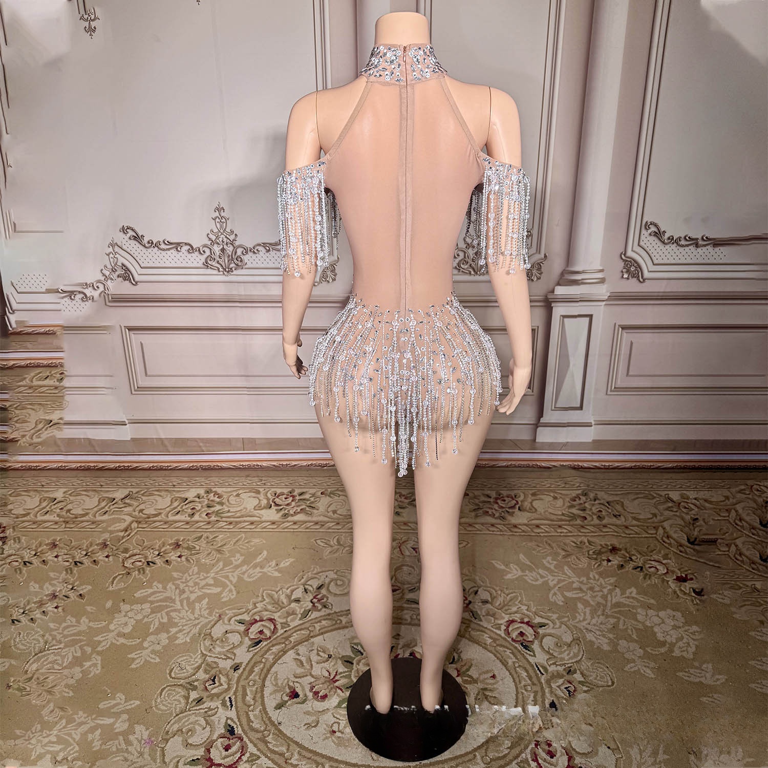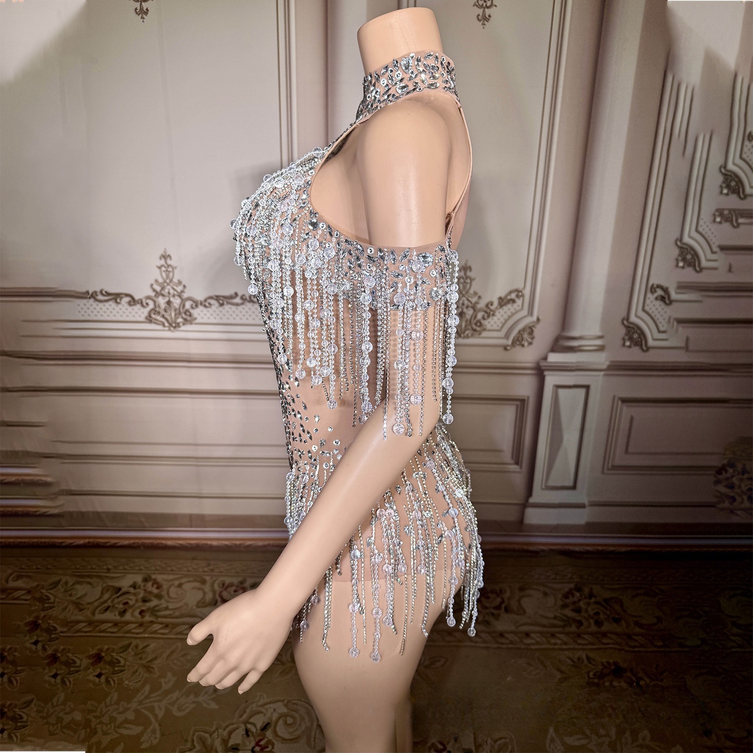 Spandex Short Evening Dress deep V & backless & with rhinestone silver PC