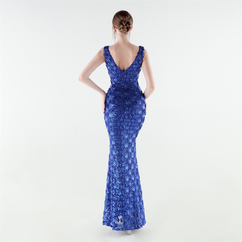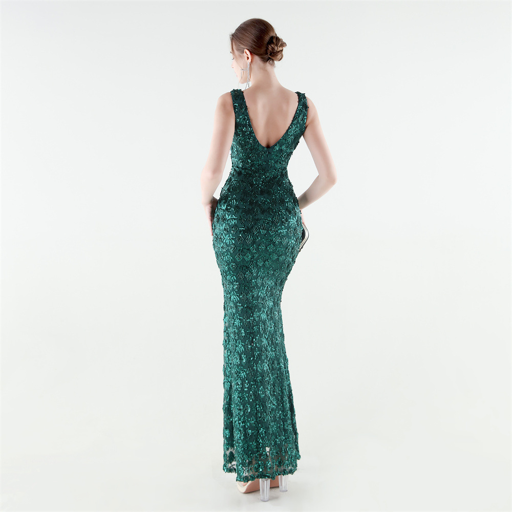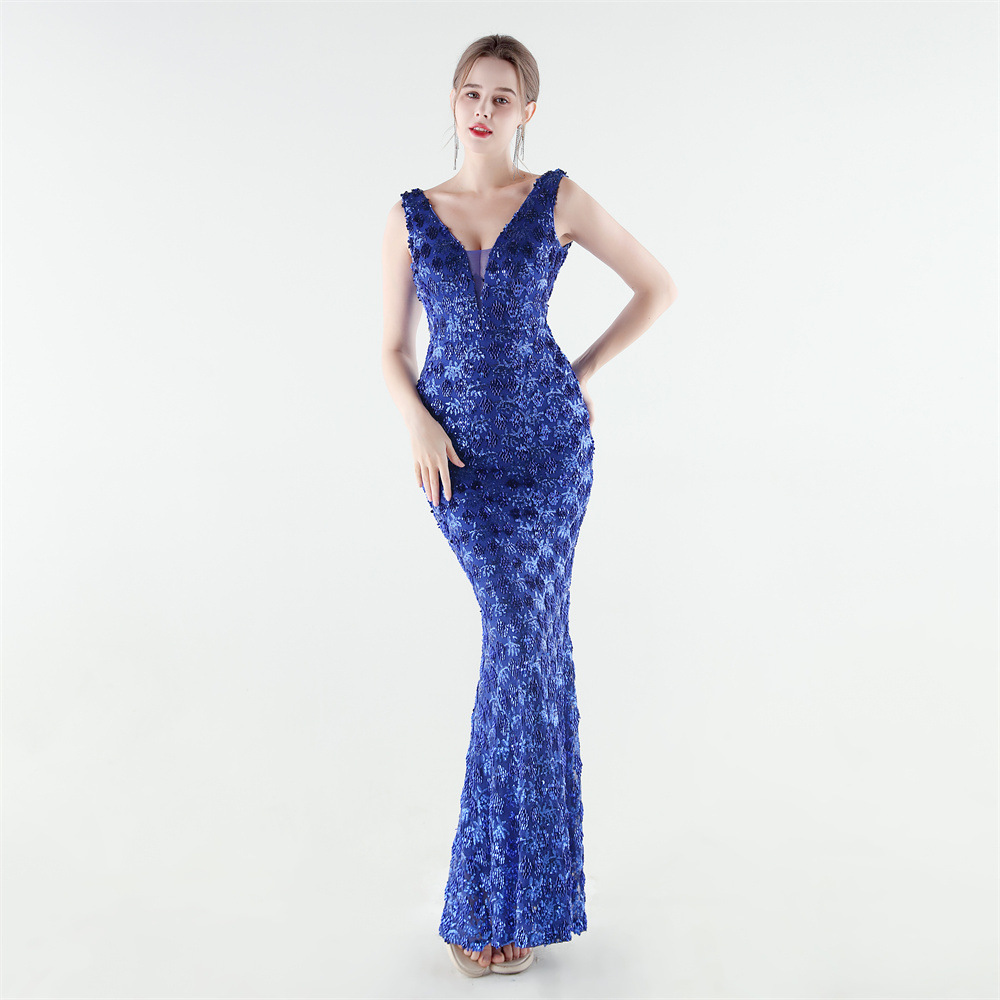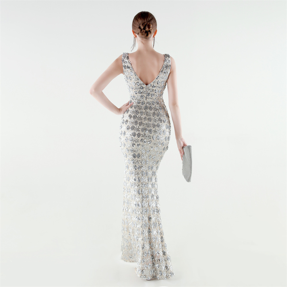 Spandex Mermaid Long Evening Dress & padded Sequin PC
