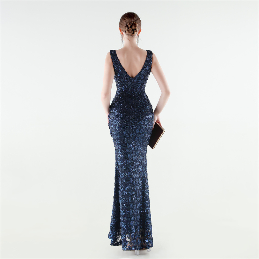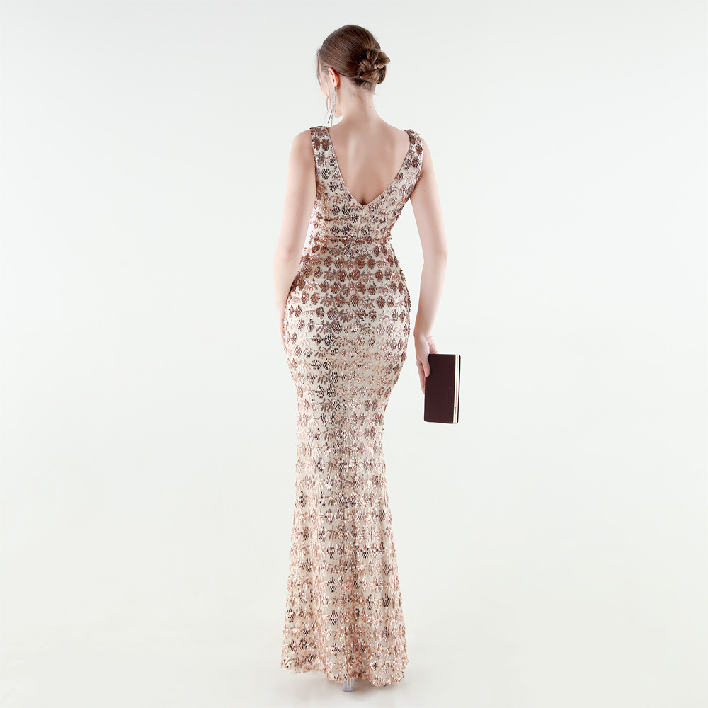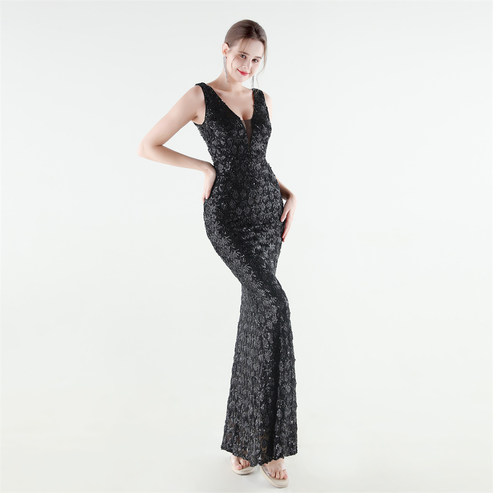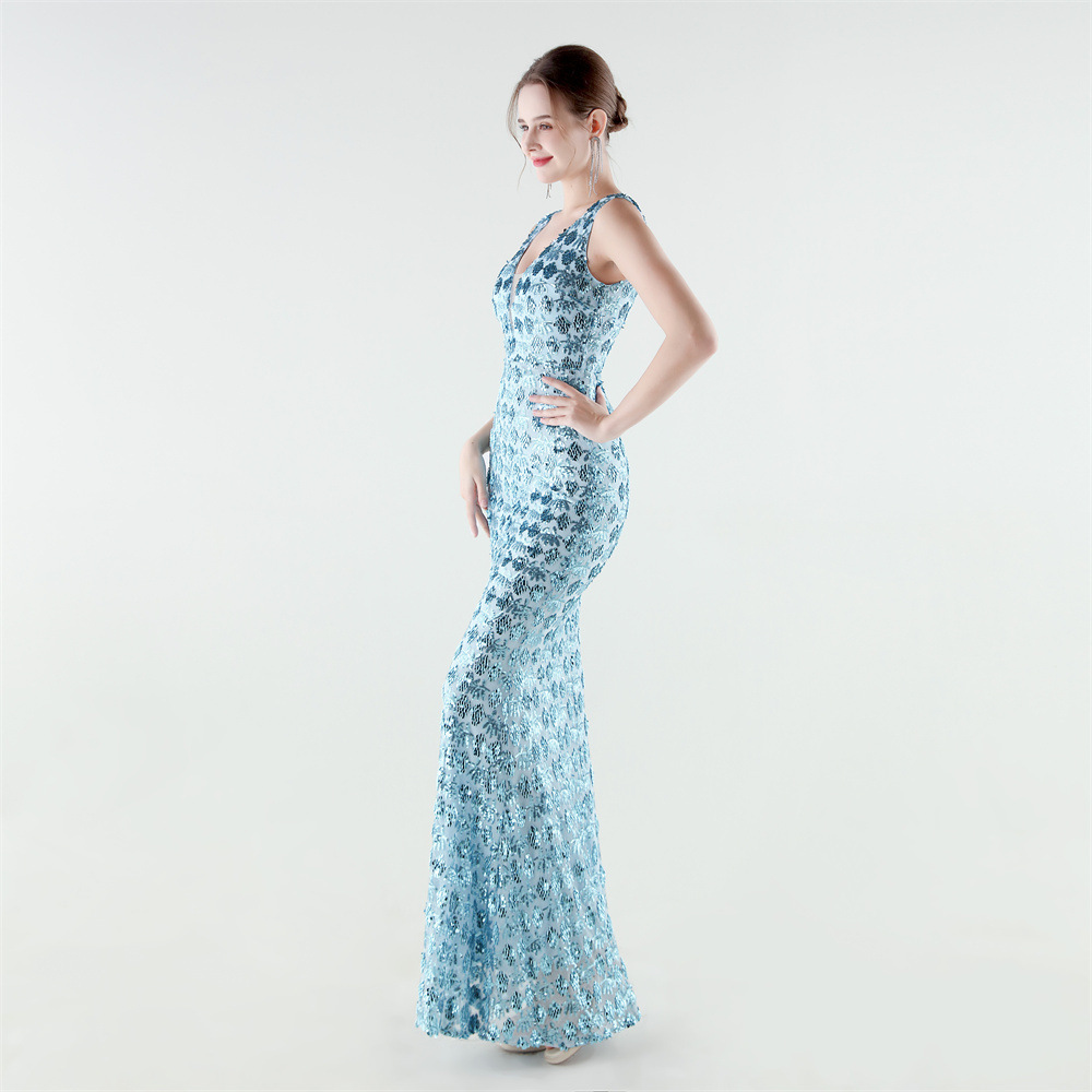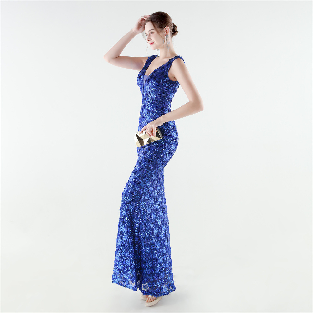 Spandex Mermaid Long Evening Dress & padded Sequin PC