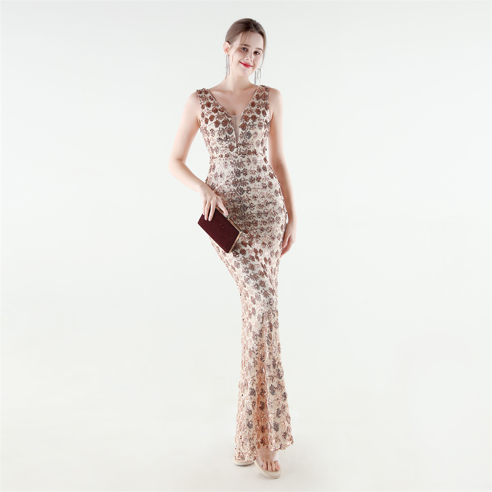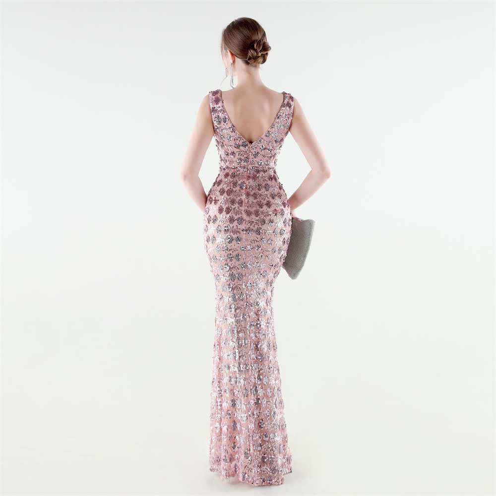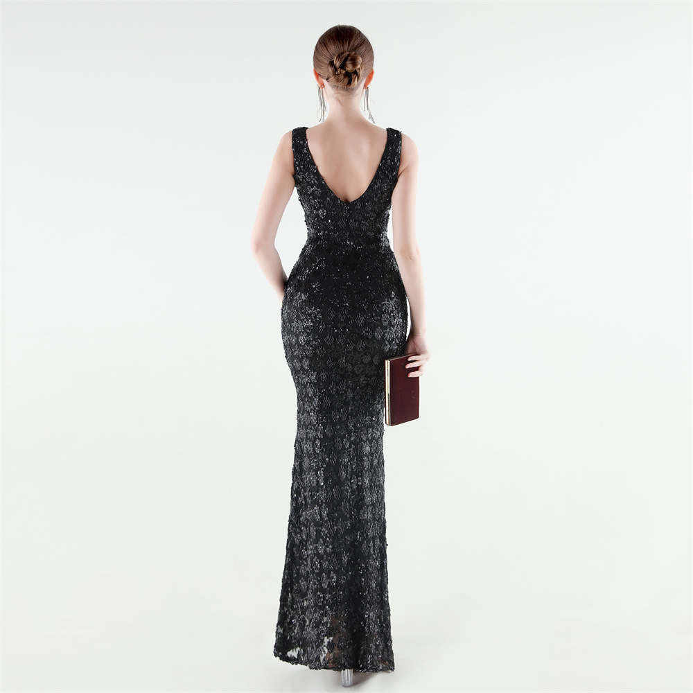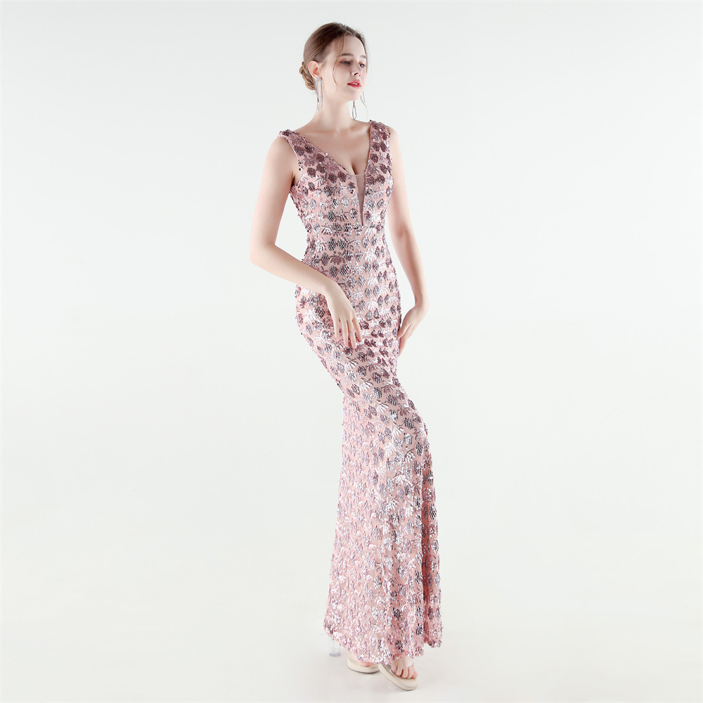 Spandex Mermaid Long Evening Dress & padded Sequin PC