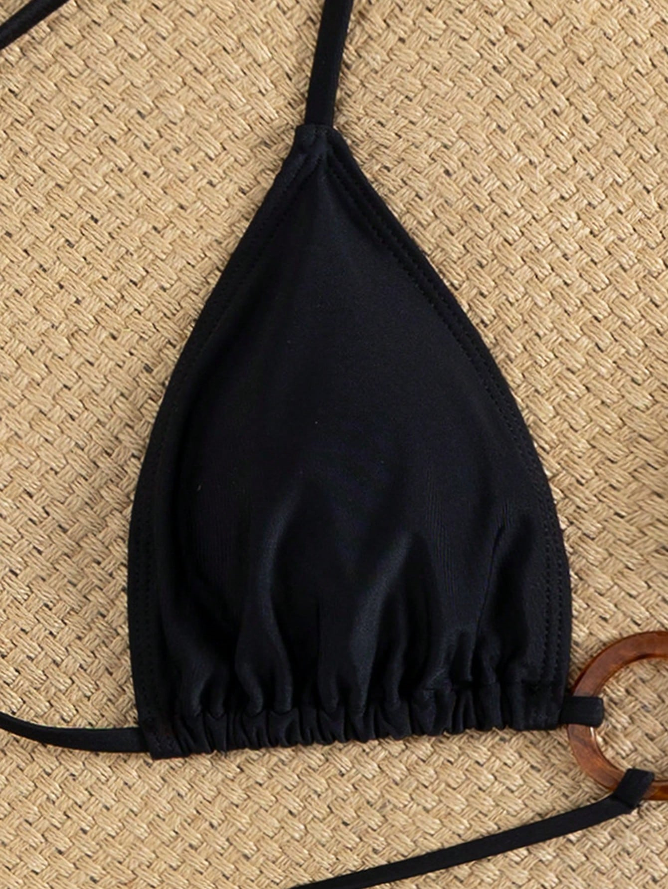 Spandex & Polyester Quick Dry Bikini & two piece & padded plain dyed Solid black Set