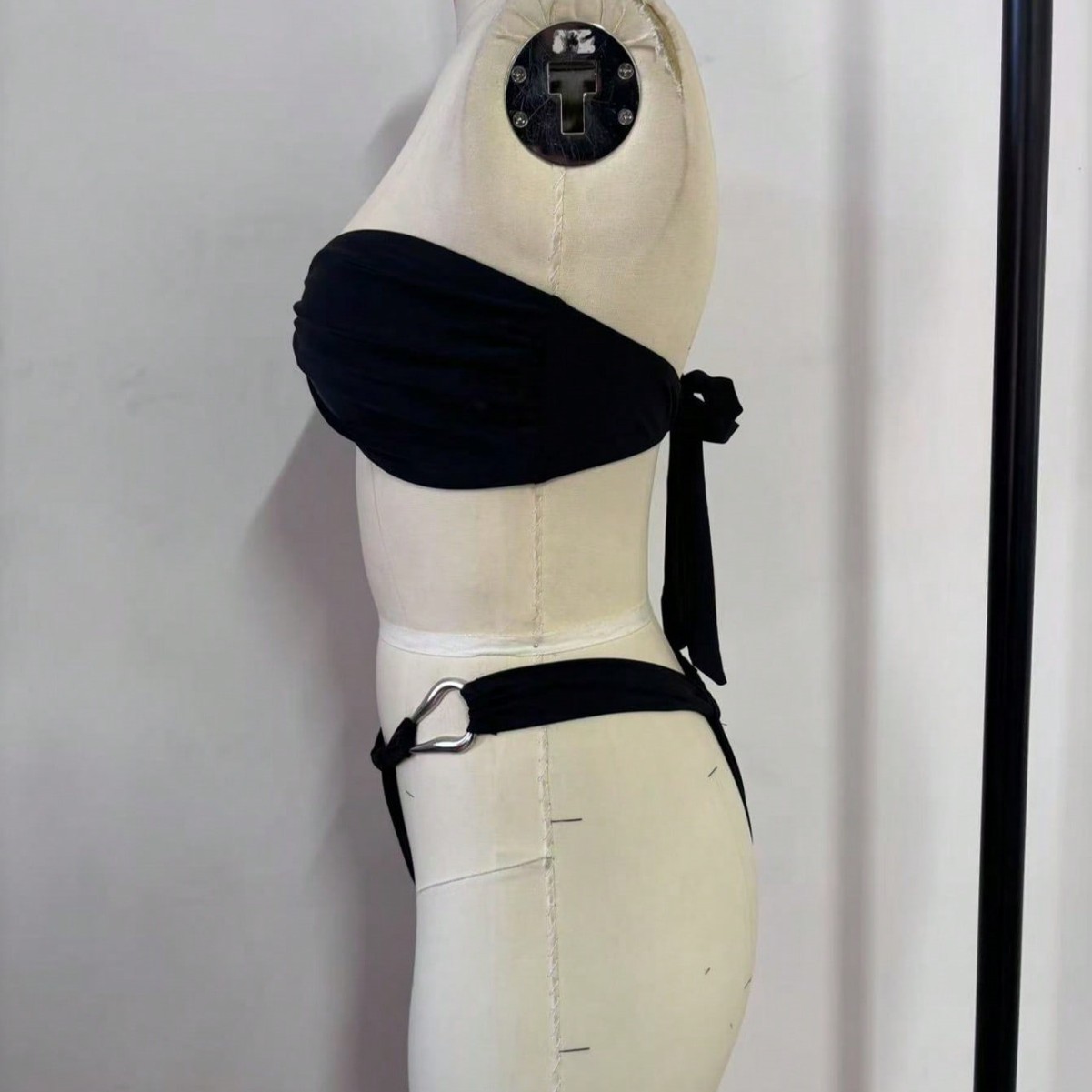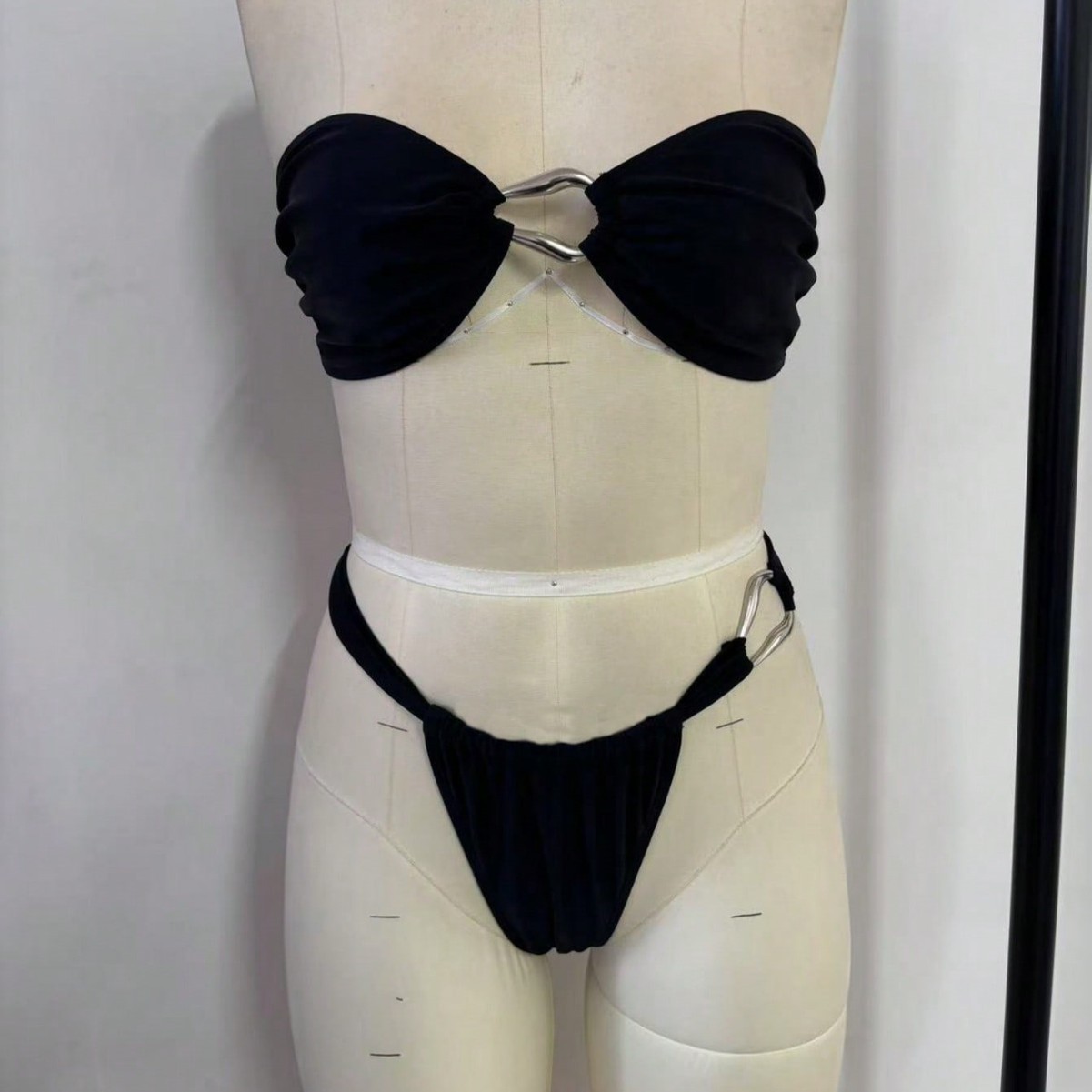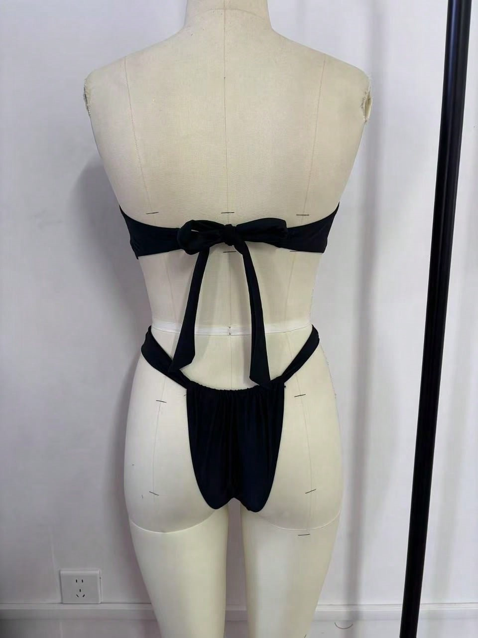 Spandex & Polyester Bikini & two piece & tube & padded plain dyed Solid black Set