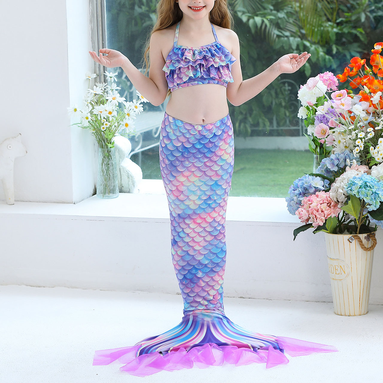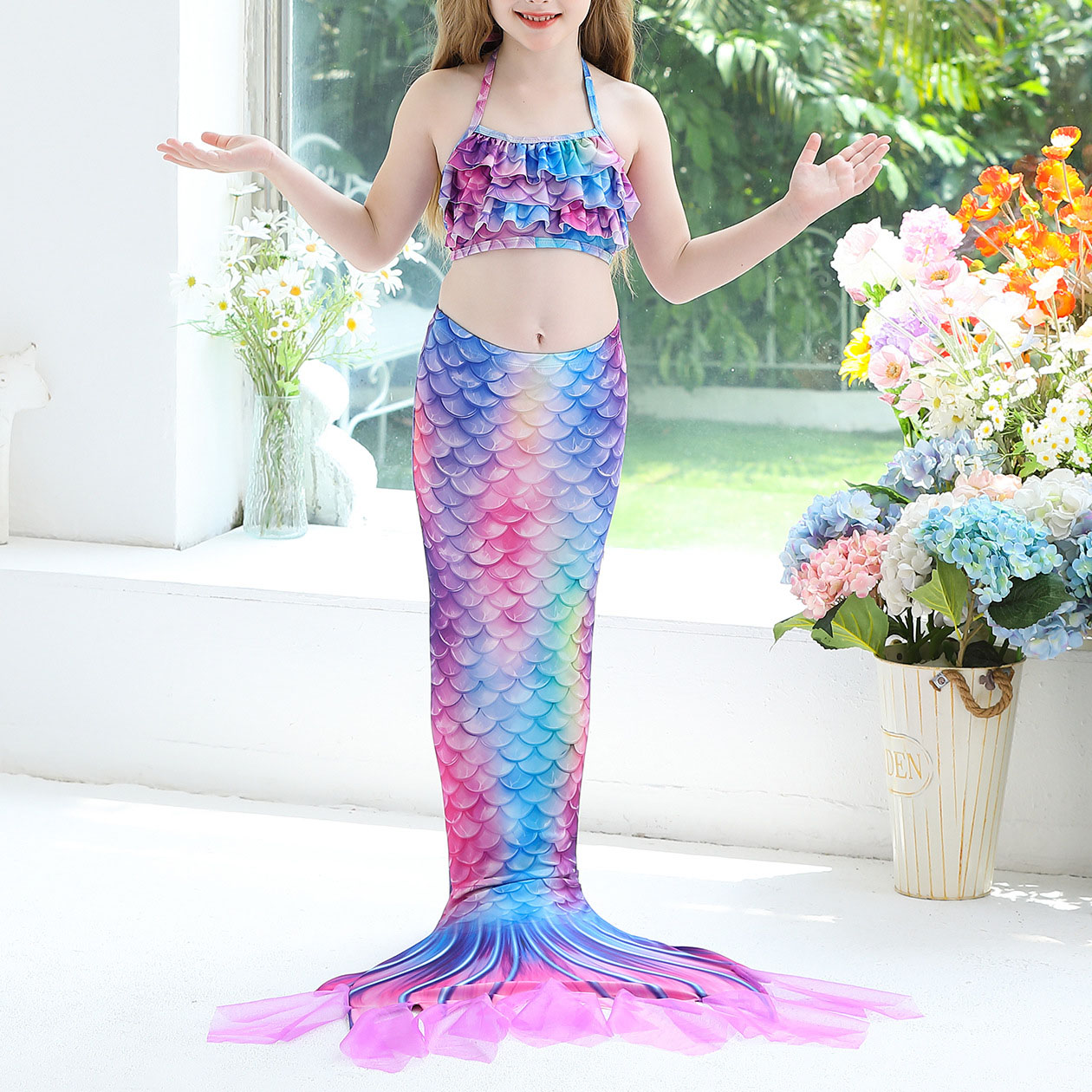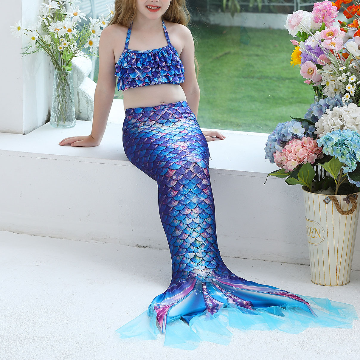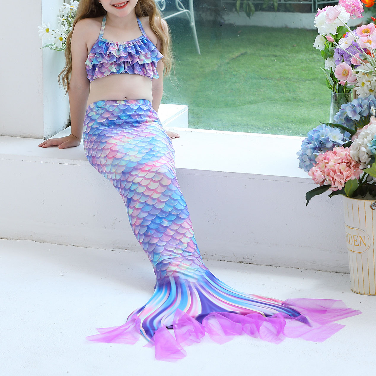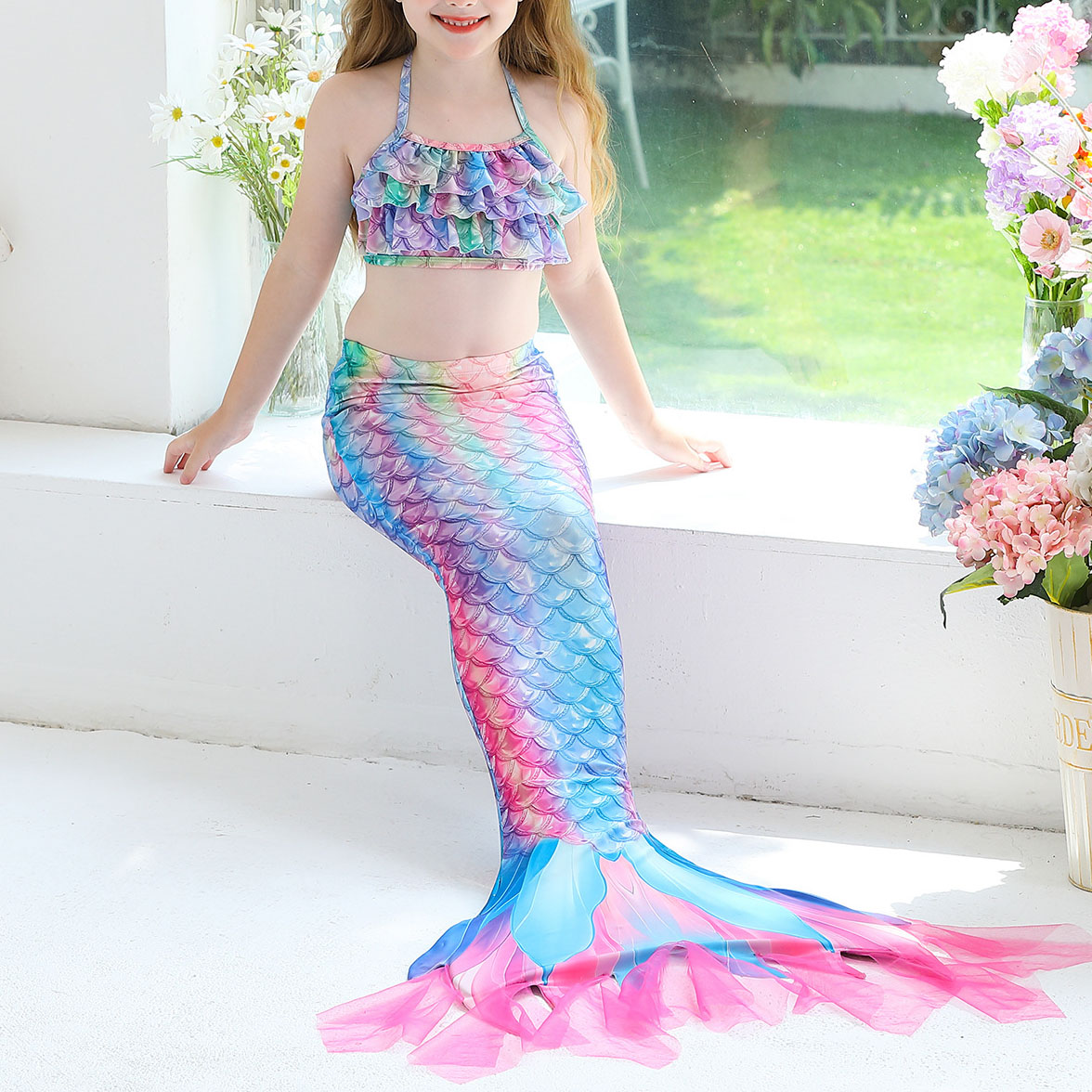 Spandex & Polyester Children Mermail Swimming Suit & three piece patchwork :150 PC
