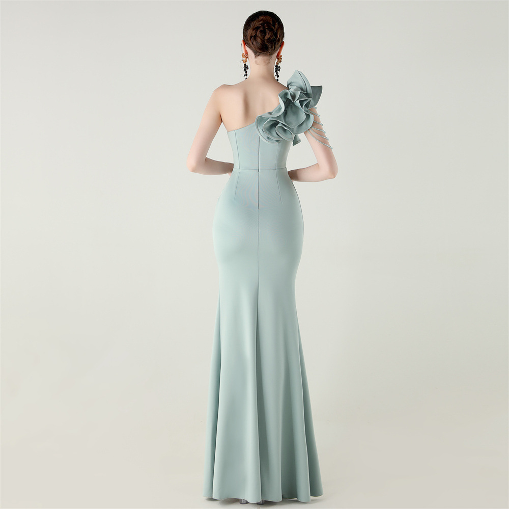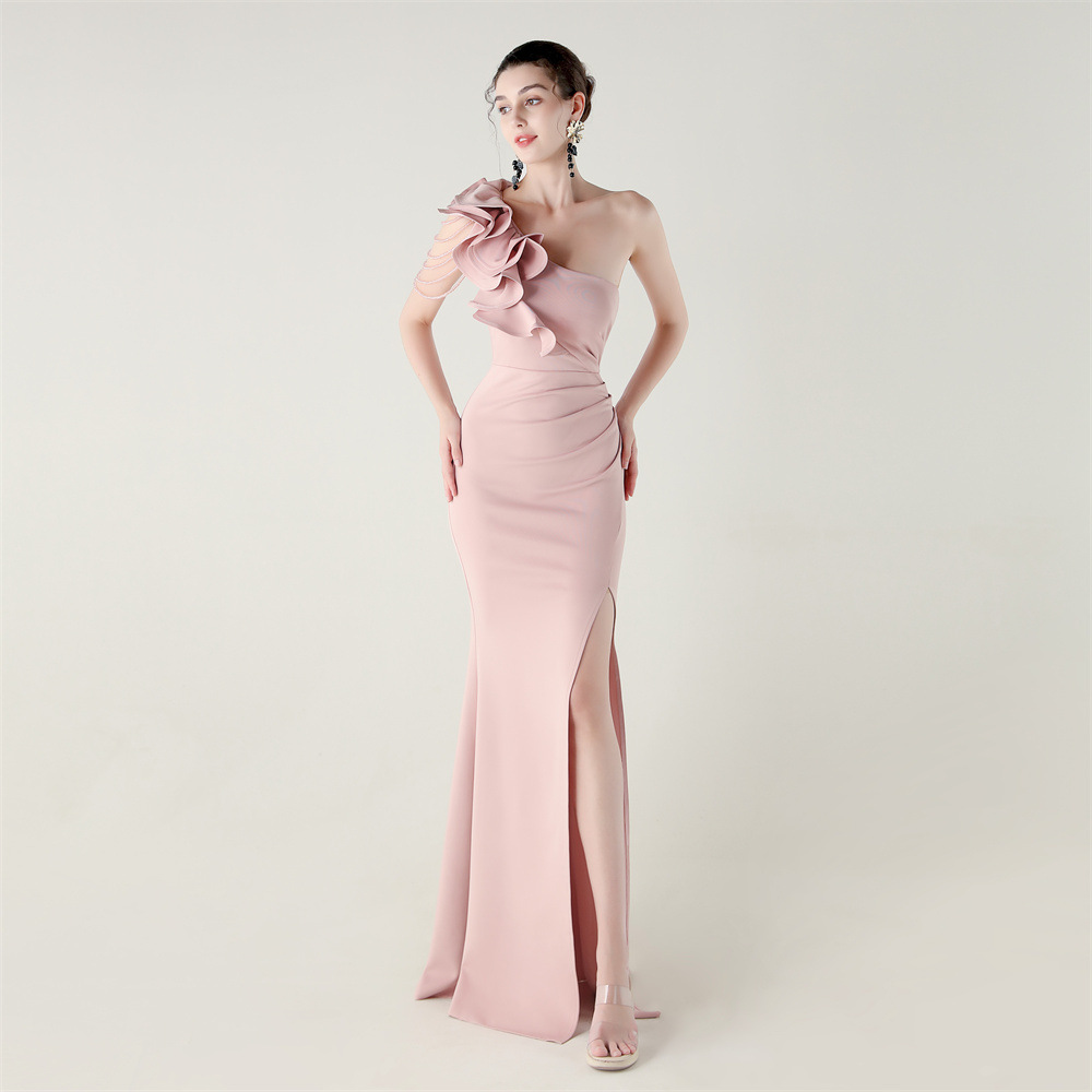 Slim,side slit,padded,One Shoulder