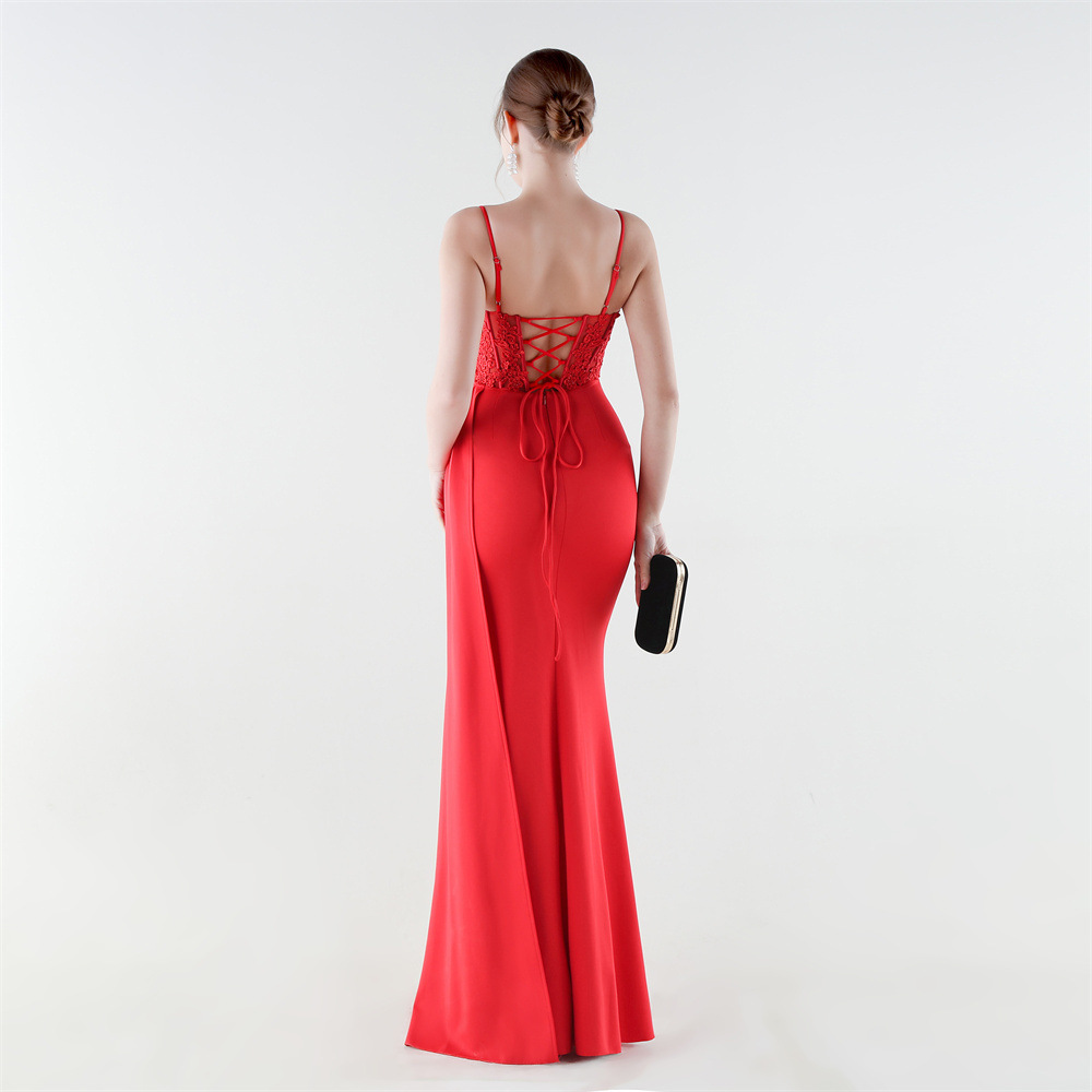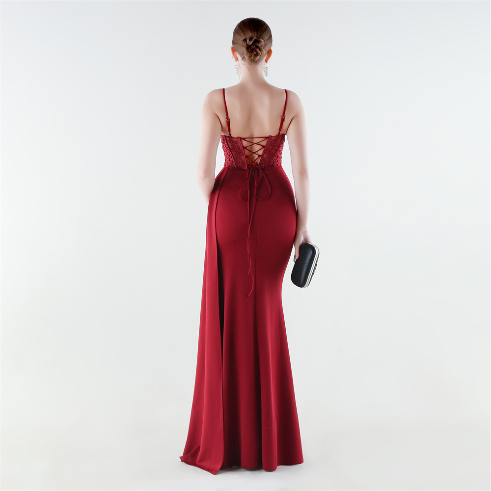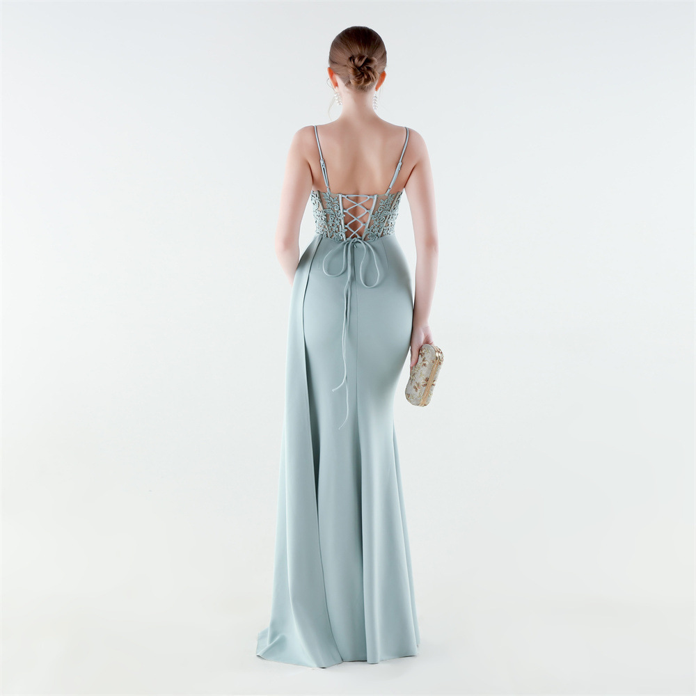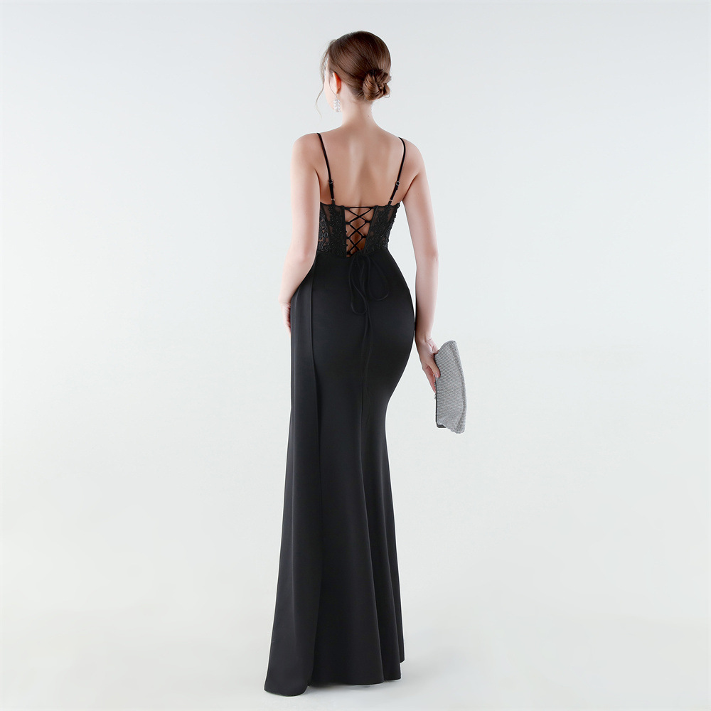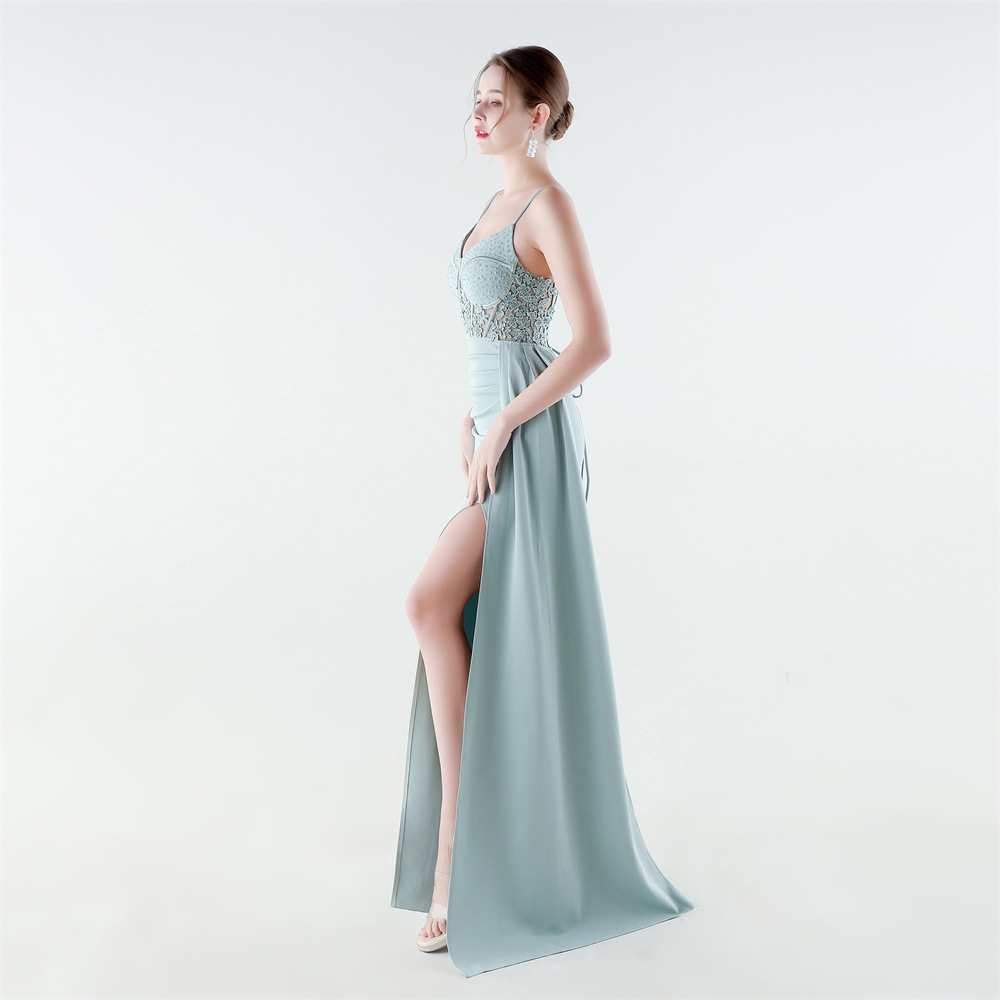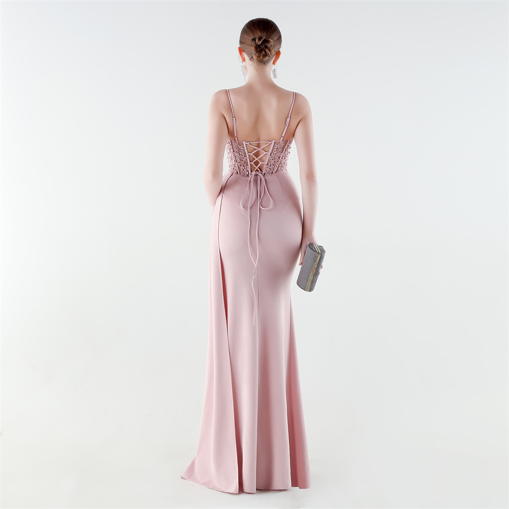Spandex & Polyester Long Evening Dress side slit & padded iron-on PC