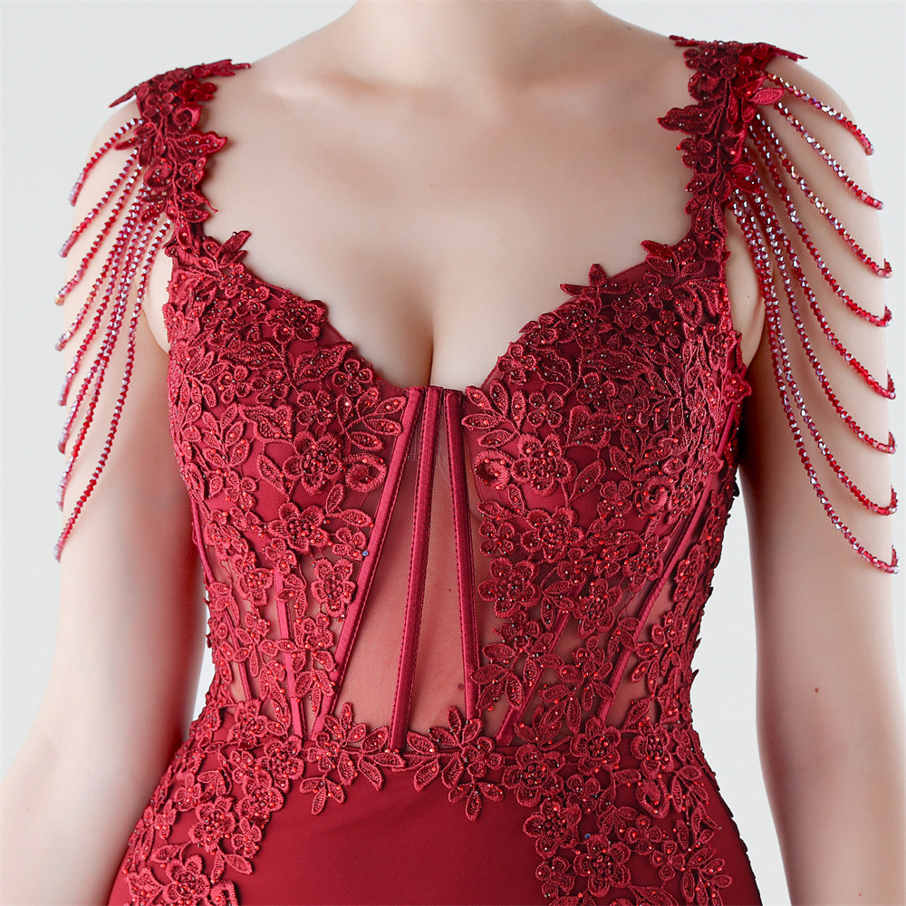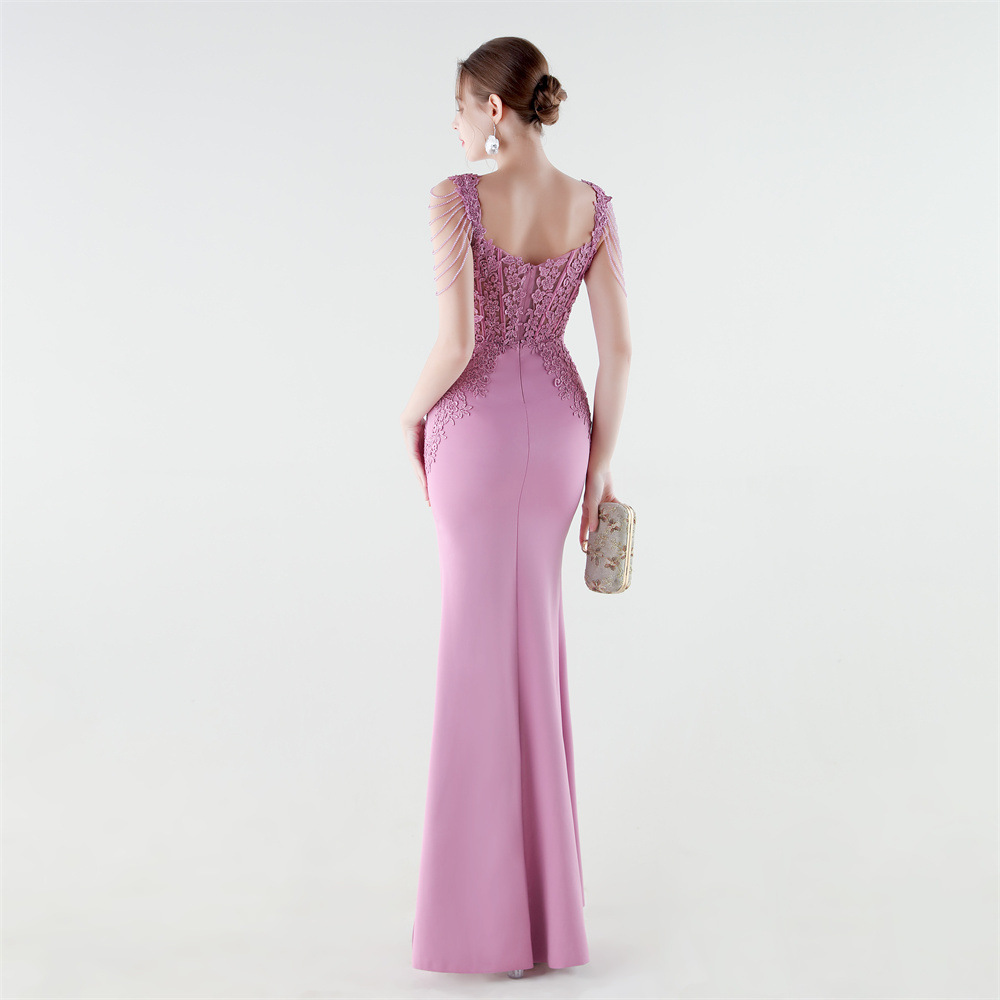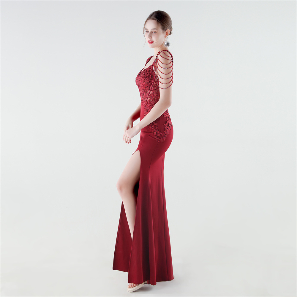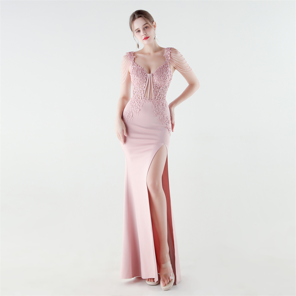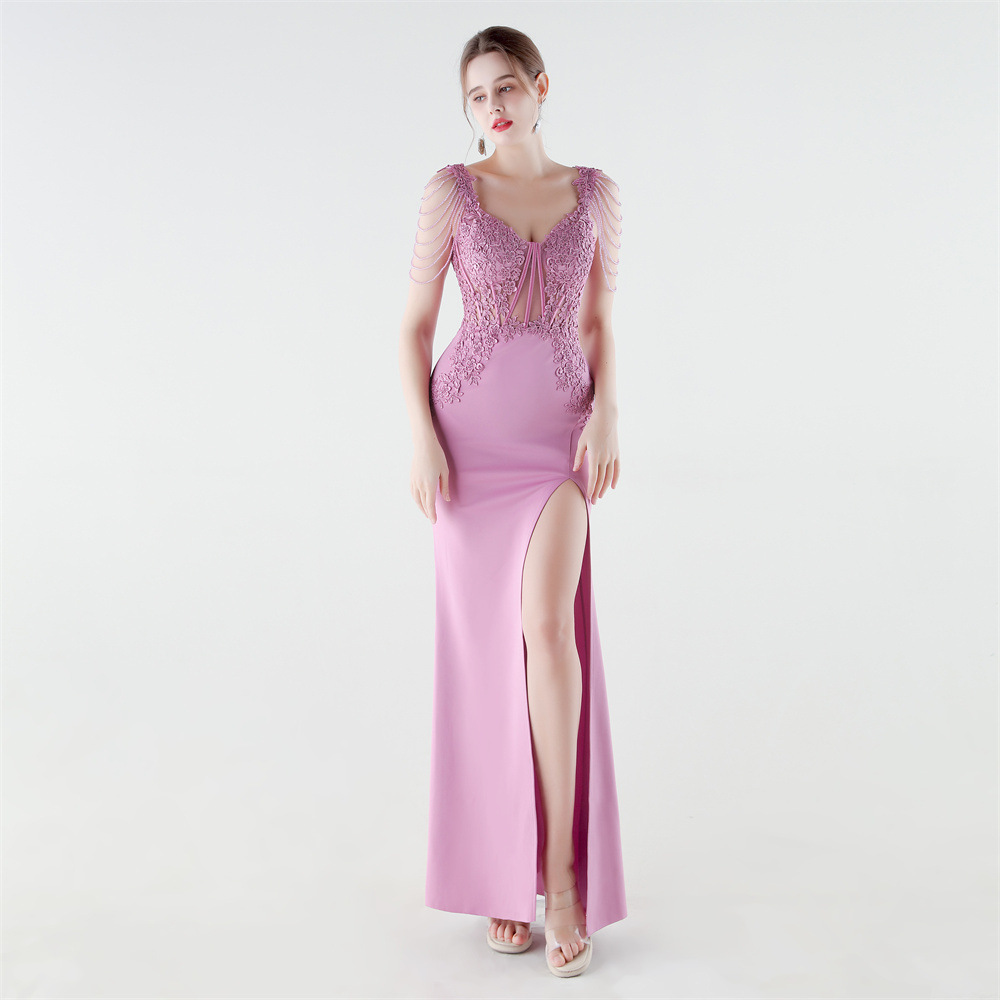 Spandex & Polyester Long Evening Dress side slit & padded iron-on PC