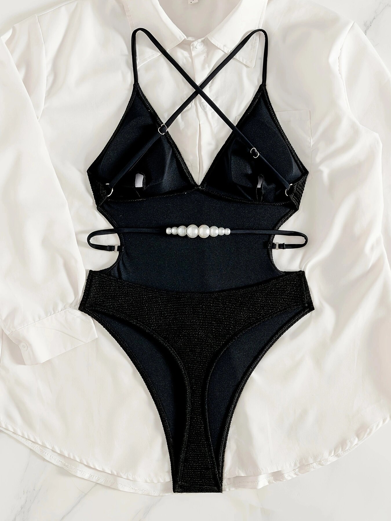 Spandex & Polyester One-piece Swimsuit backless & padded Solid black PC