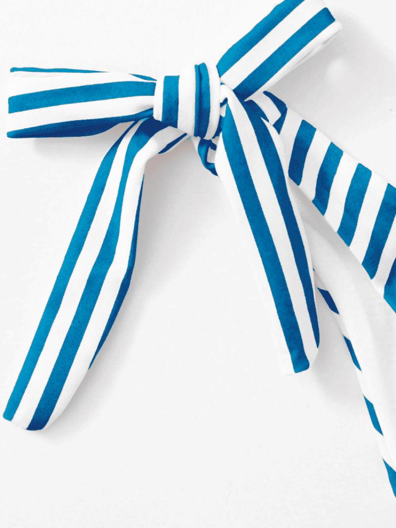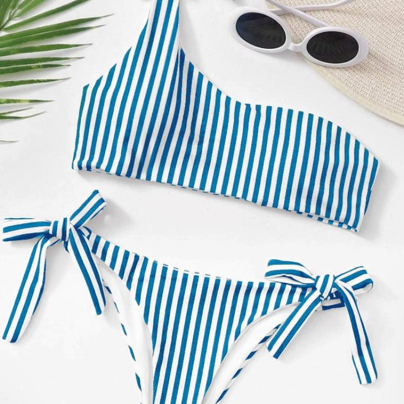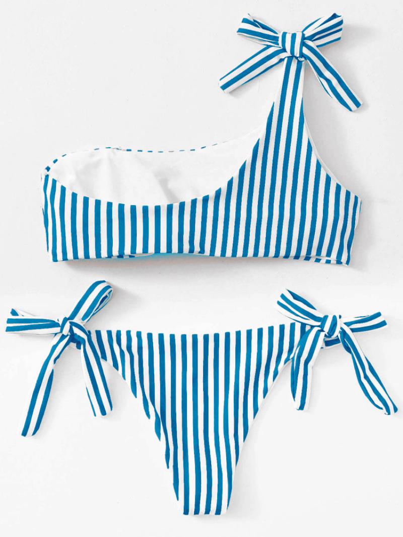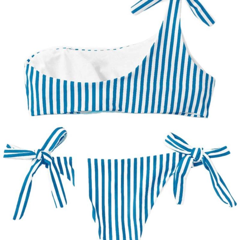 Spandex & Polyester Tankinis Set & two piece & padded & One Shoulder printed striped blue Set