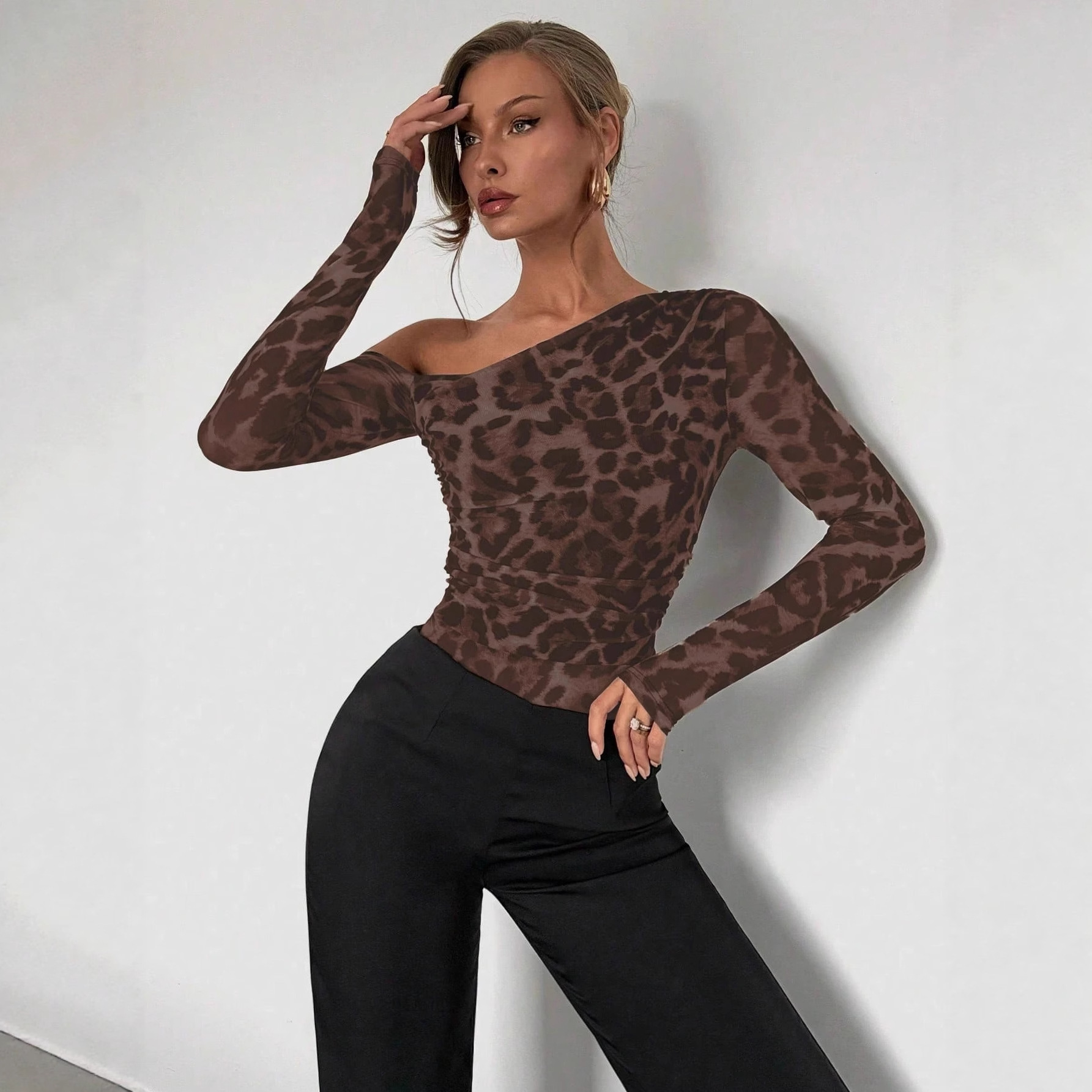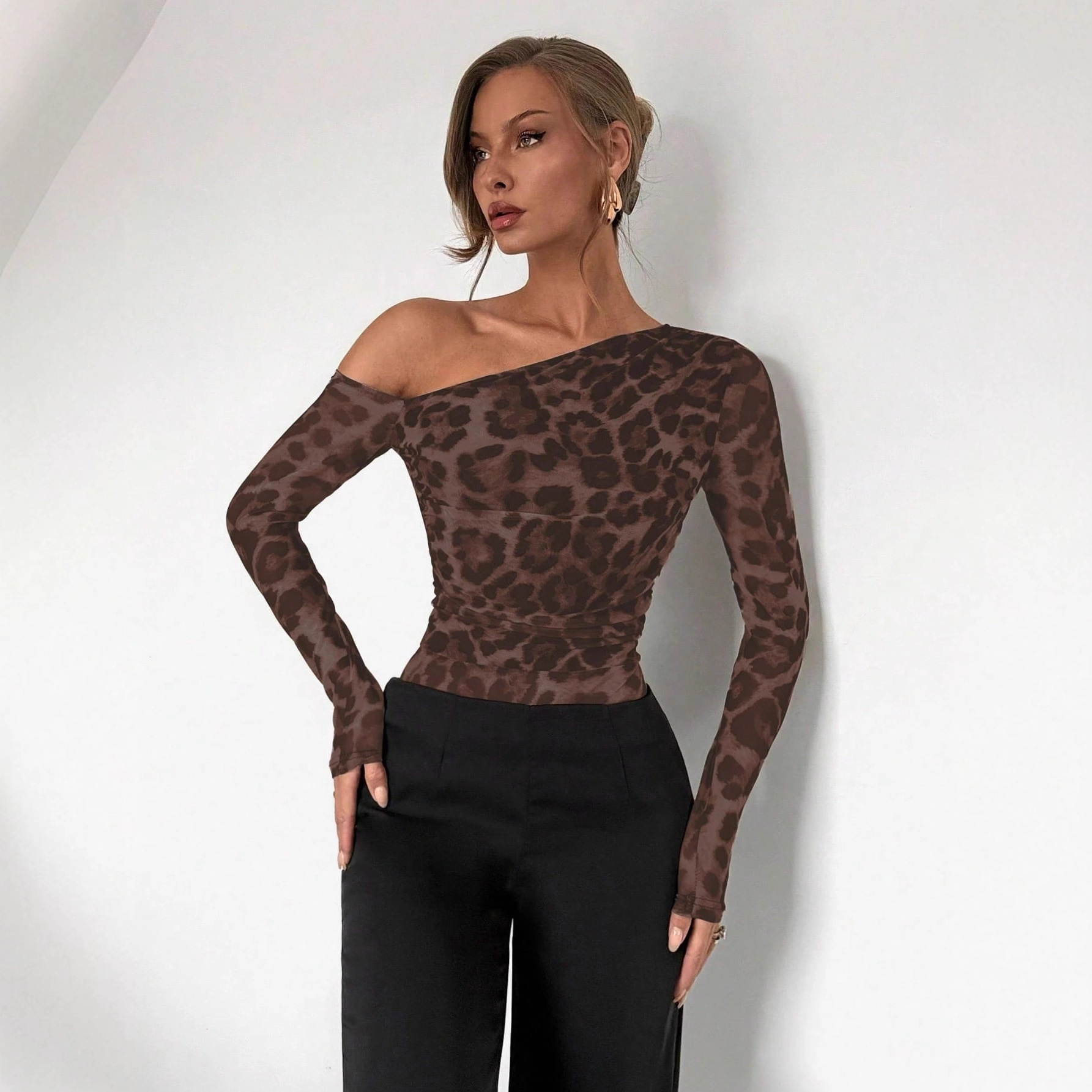Spandex & Polyester shoulder slope Women Jumpsuit leopard coffee PC
