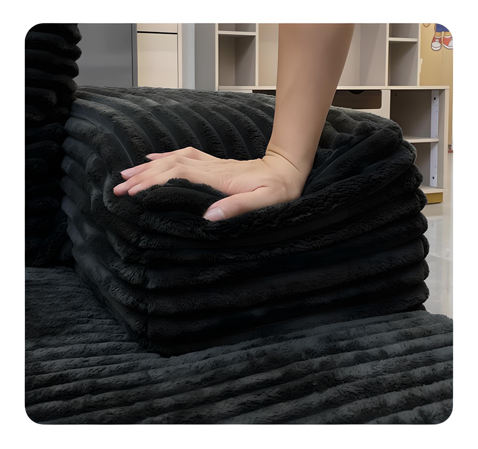 Sponge & Corduroy Soft Compression Sofa Solid black PC
