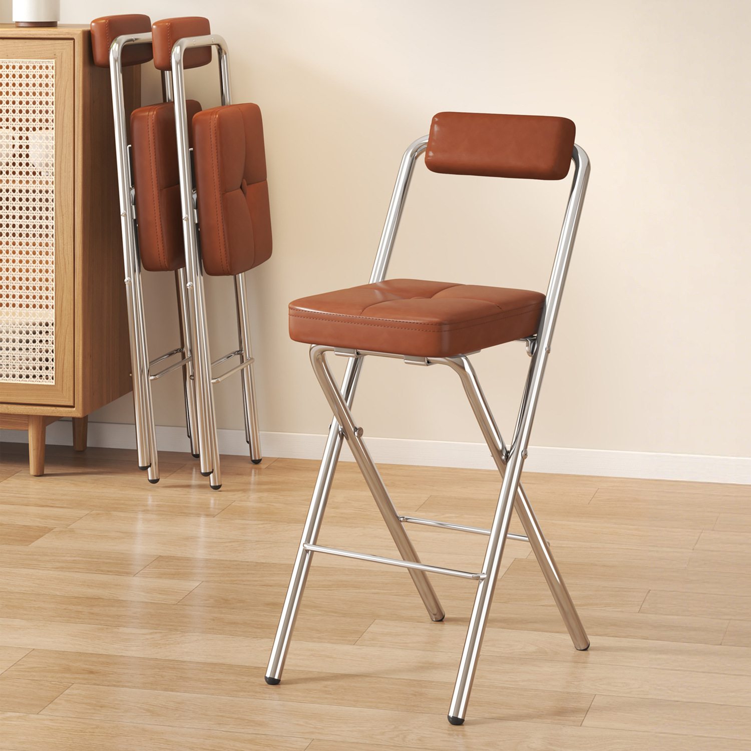 Stainless Steel Foldable Chair & anti-skidding MDF Board & Rattan & Sponge & PU Leather PC