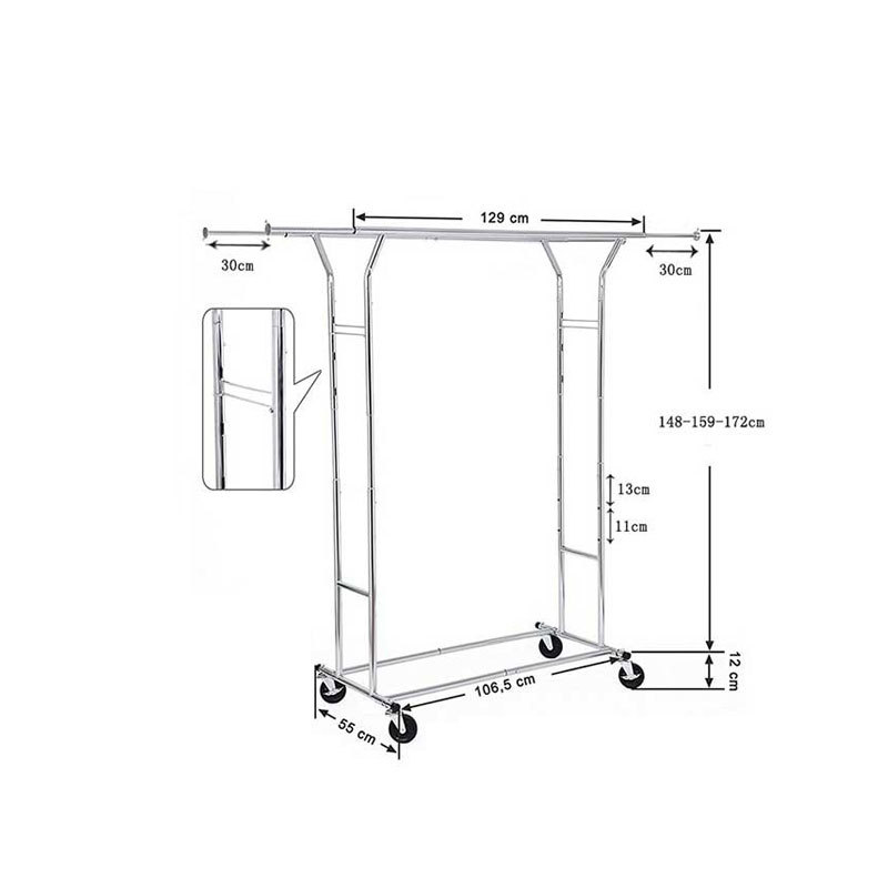 Steel Tube foldable Clothes Hanging Rack with caster & stretchable PC