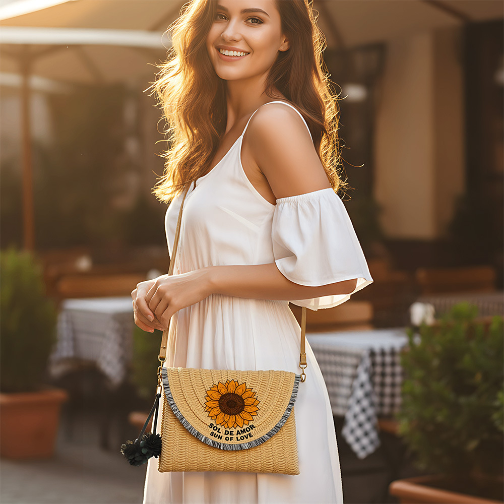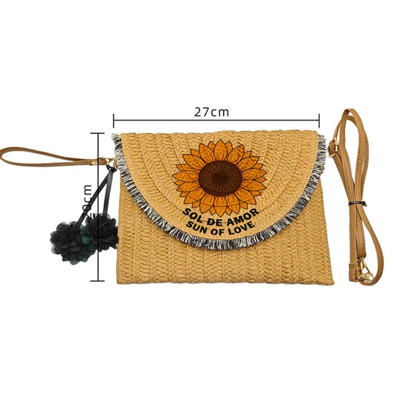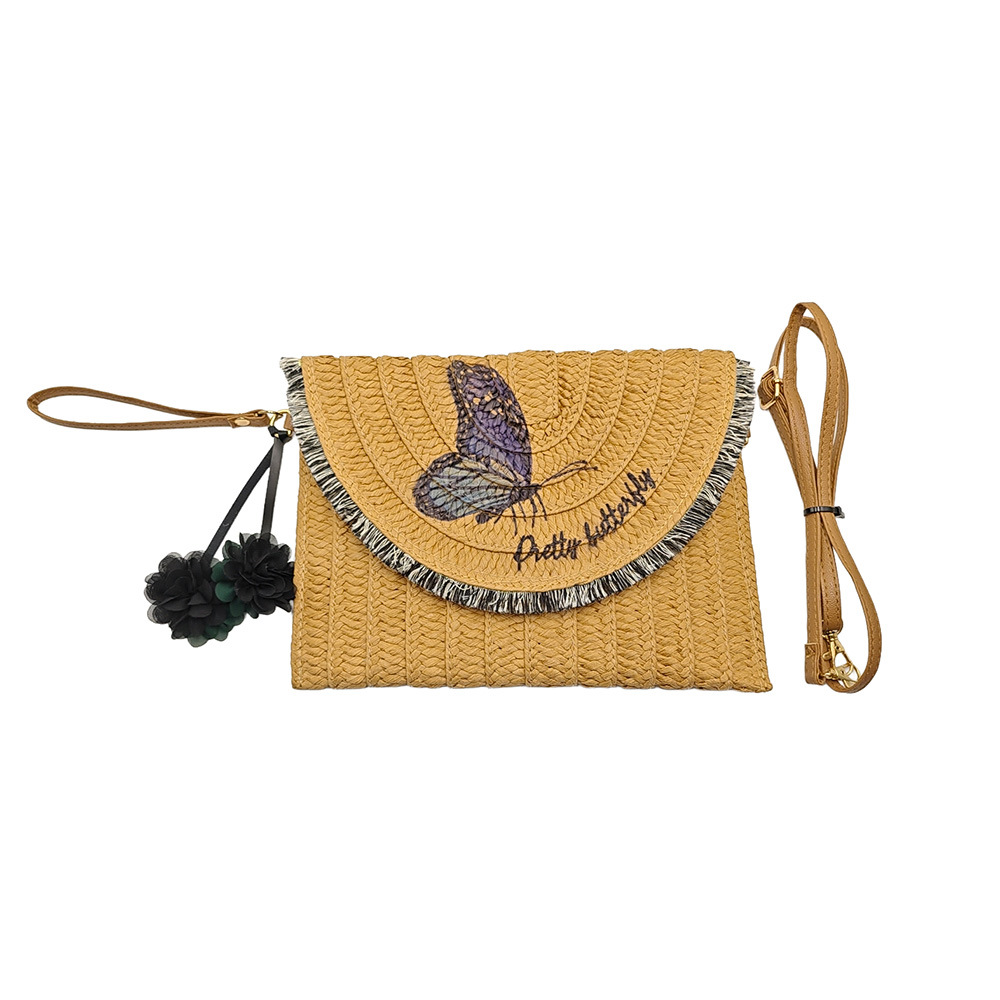 Straw Crossbody Bag soft surface & adjustable Polyester khaki PC