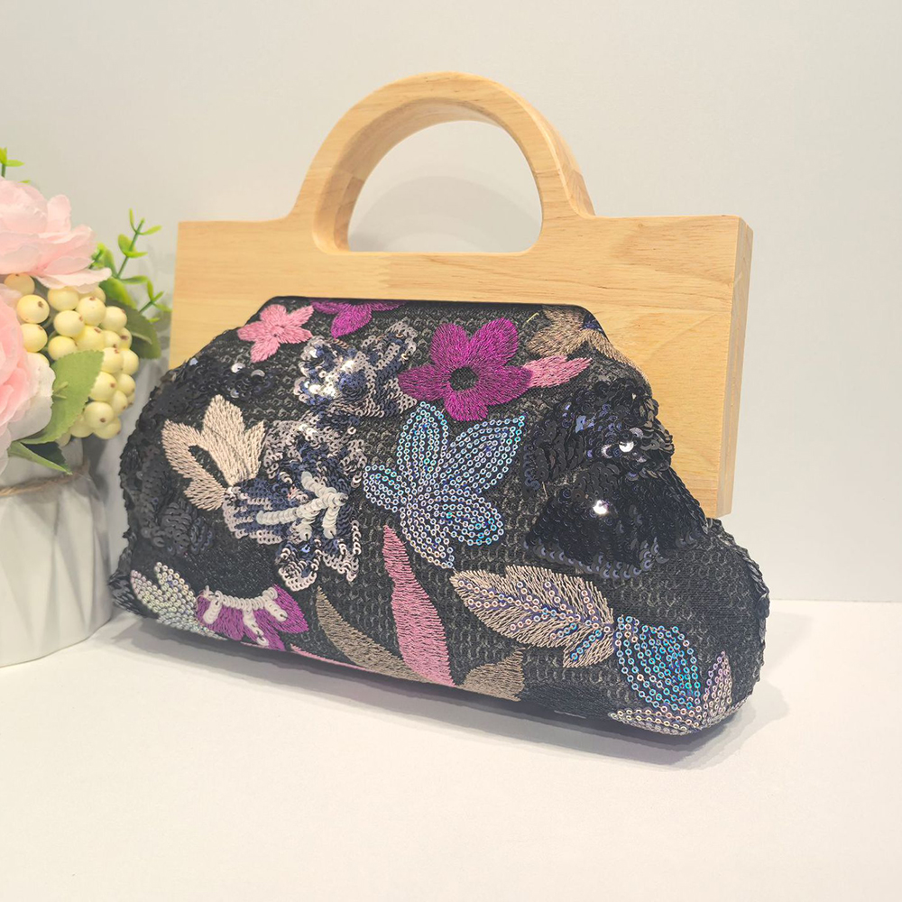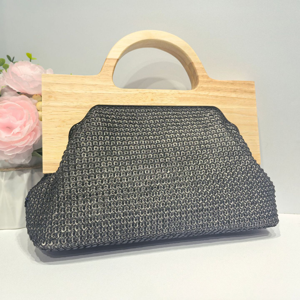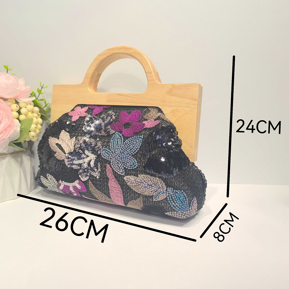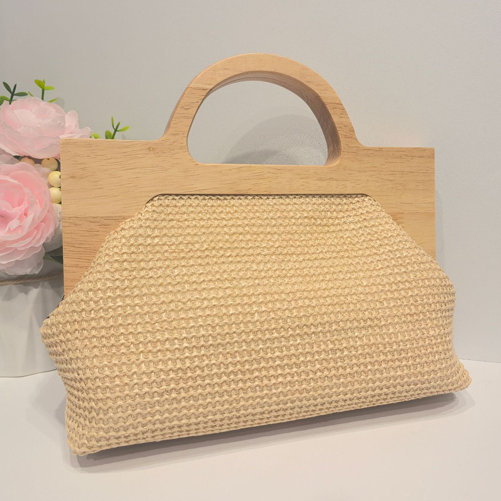 Straw Handbag soft surface & attached with hanging strap Polyester Cotton & Wood & Sequin flower shape PC