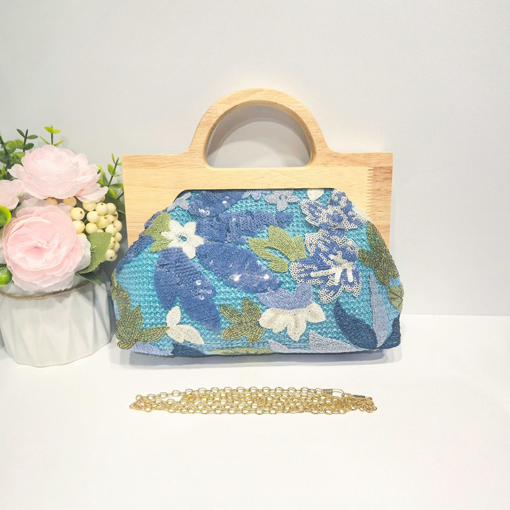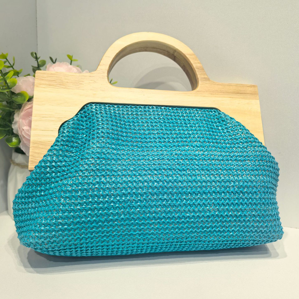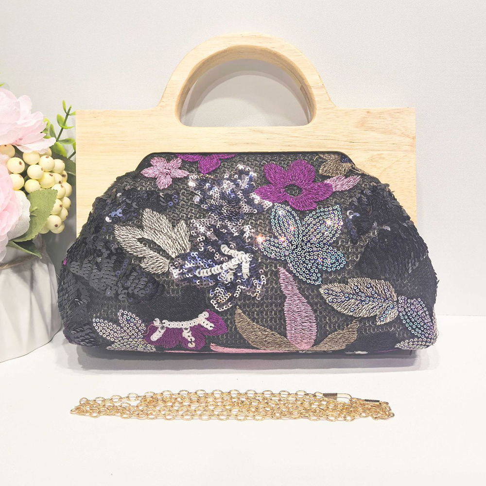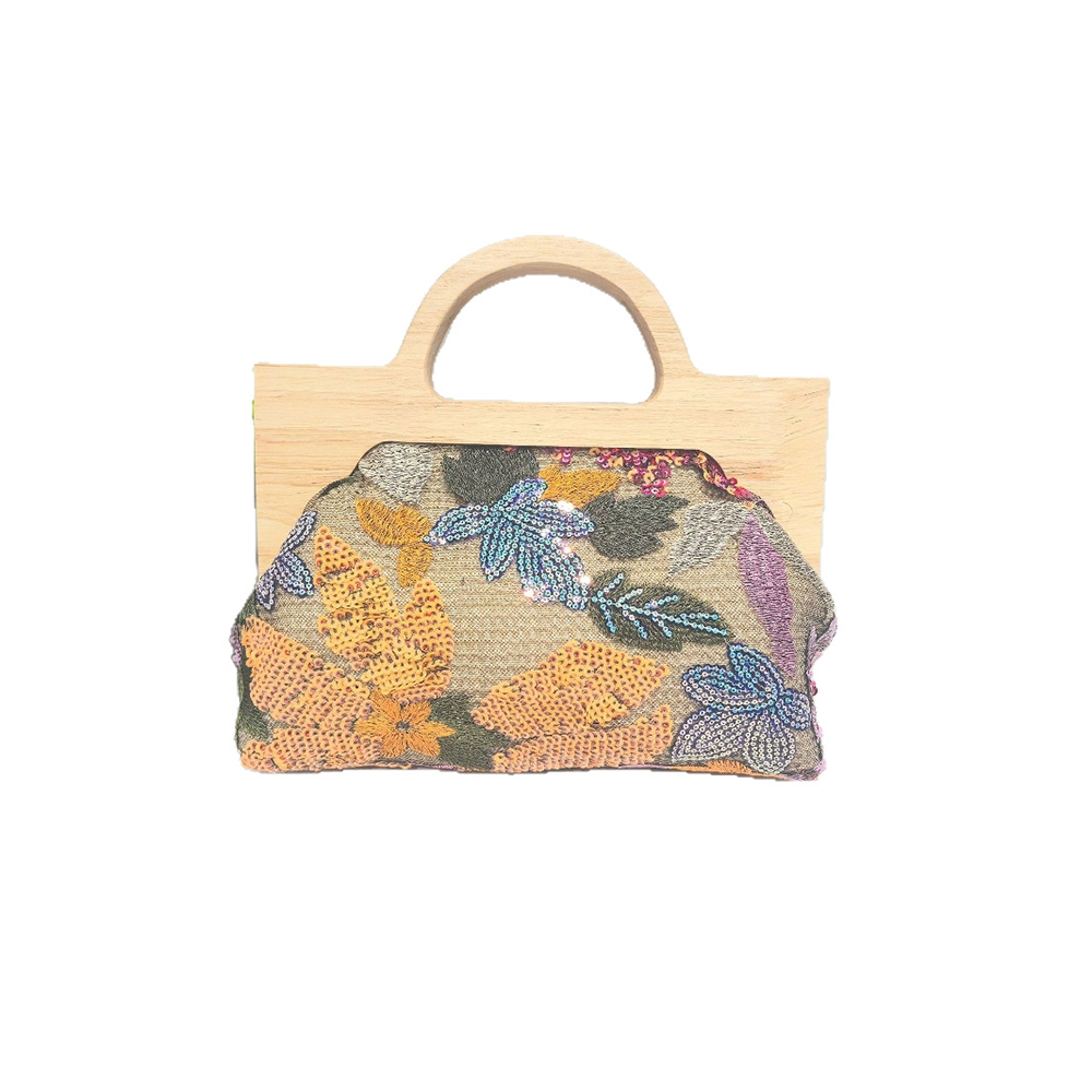 Straw Handbag soft surface & attached with hanging strap Polyester Cotton & Wood & Sequin flower shape PC