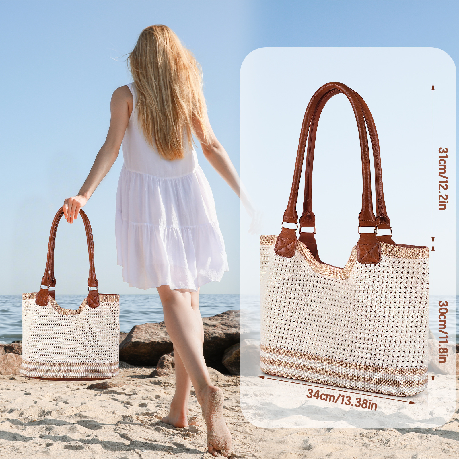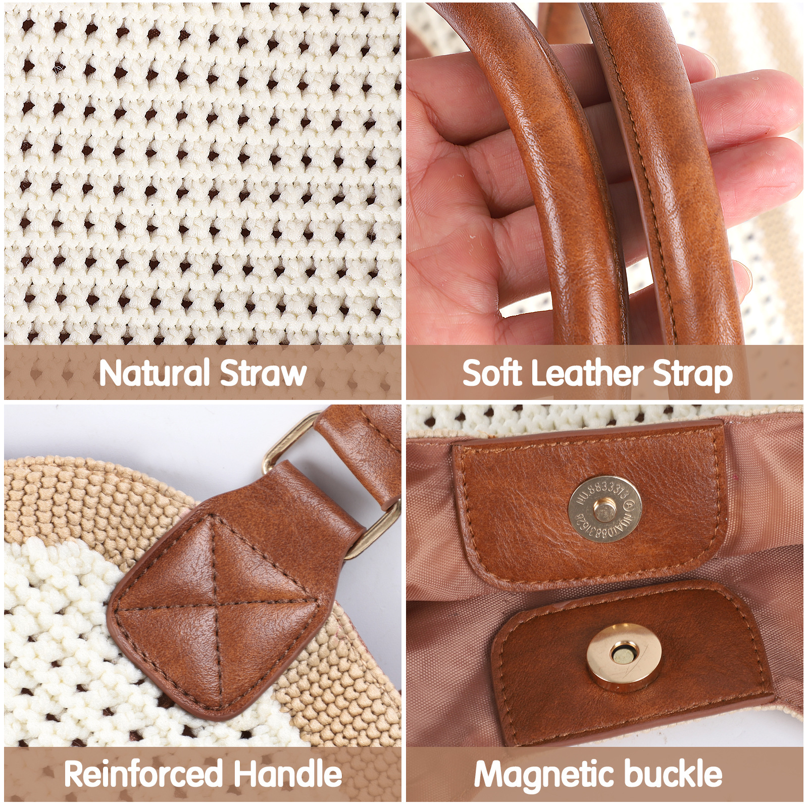 Straw Woven Shoulder Bag large capacity PU Leather white PC