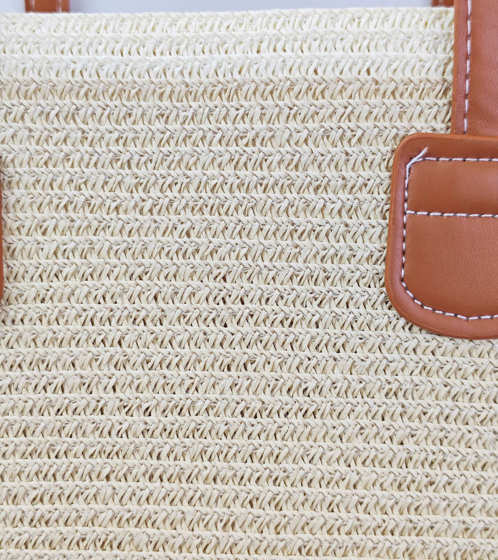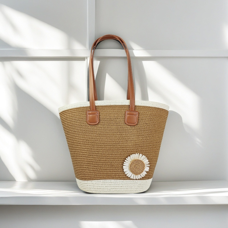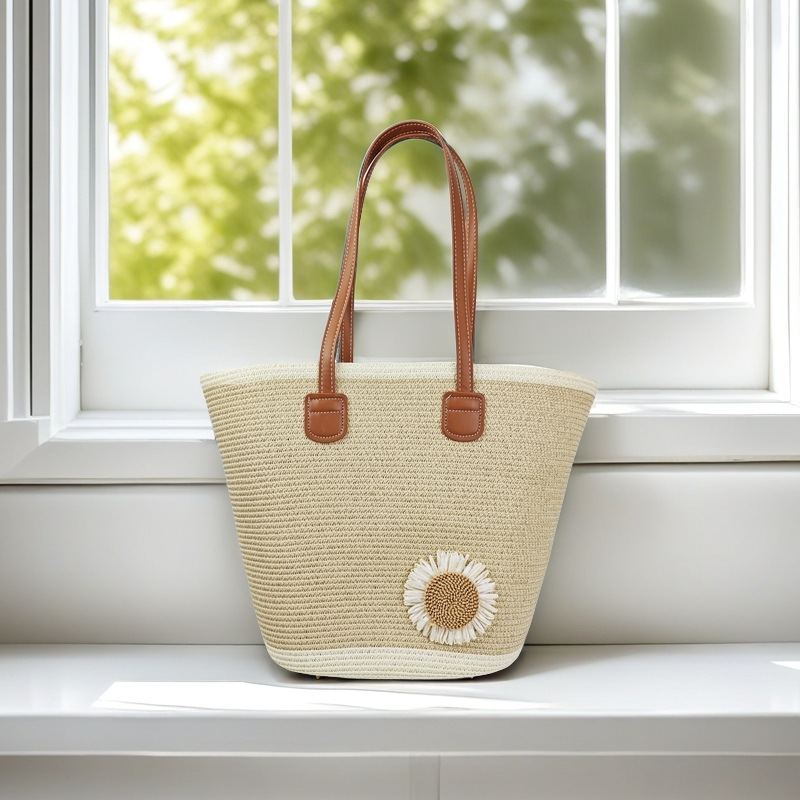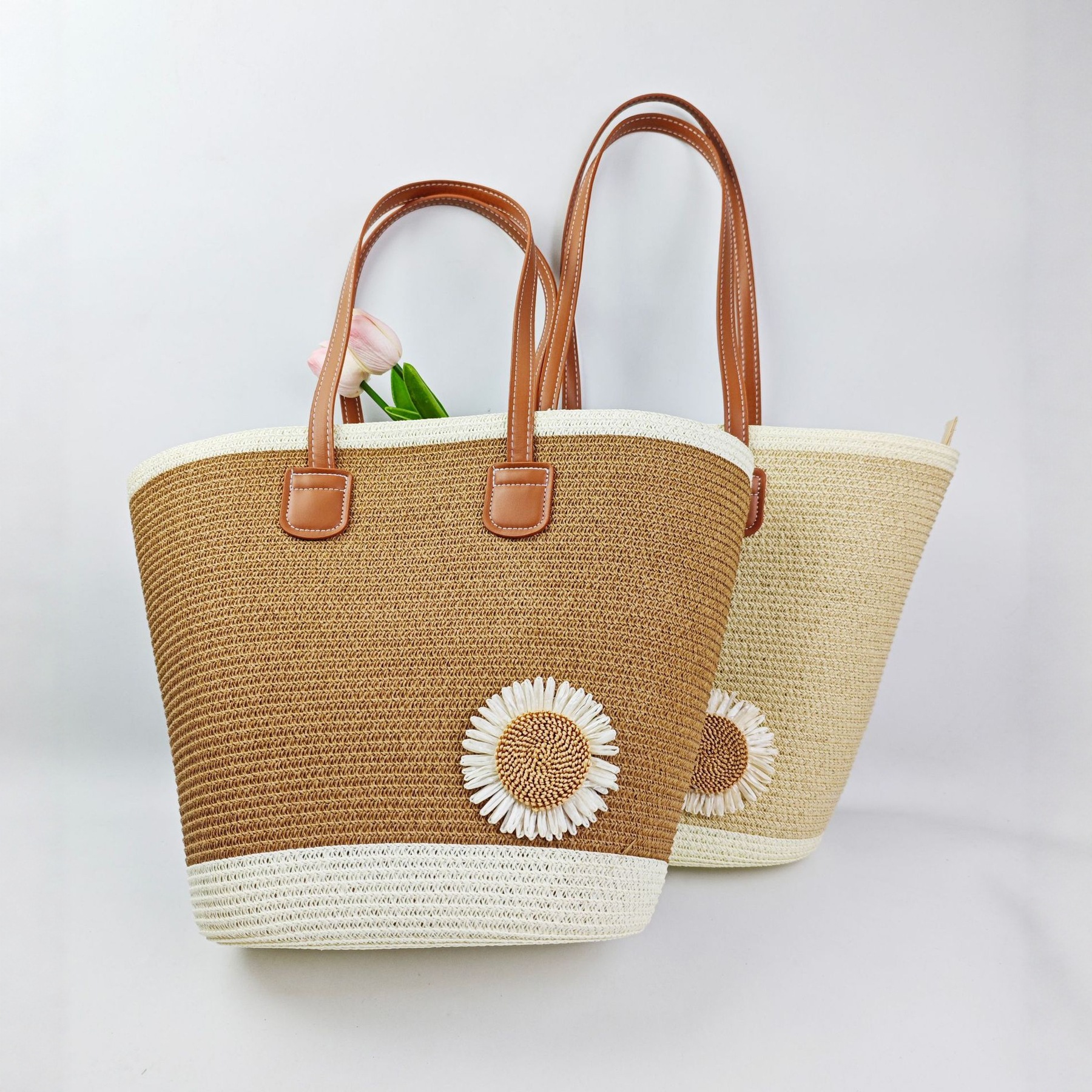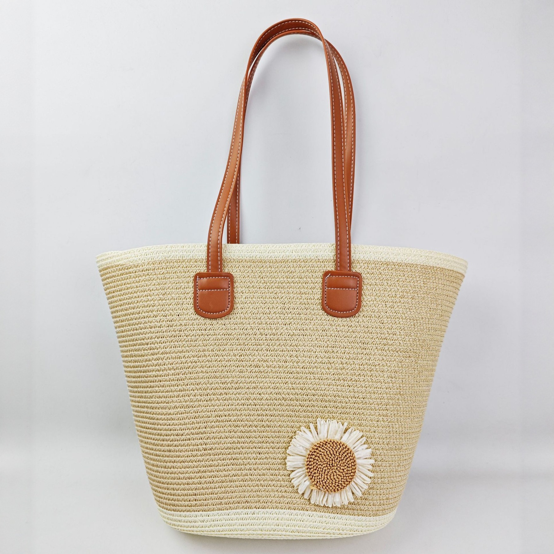 Straw Woven Shoulder Bag large capacity Polyester floral PC