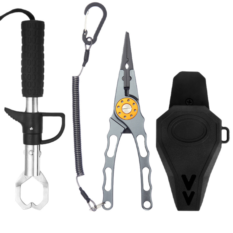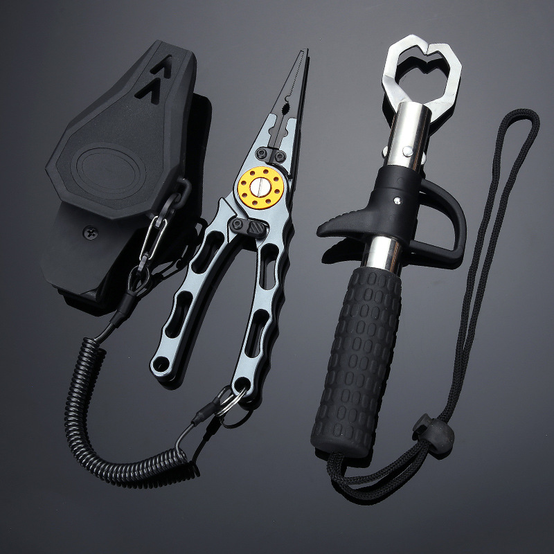 Thermo Plastic Rubber & Aluminium Alloy & Stainless Steel Multifunction Fishing Gripper gray Set