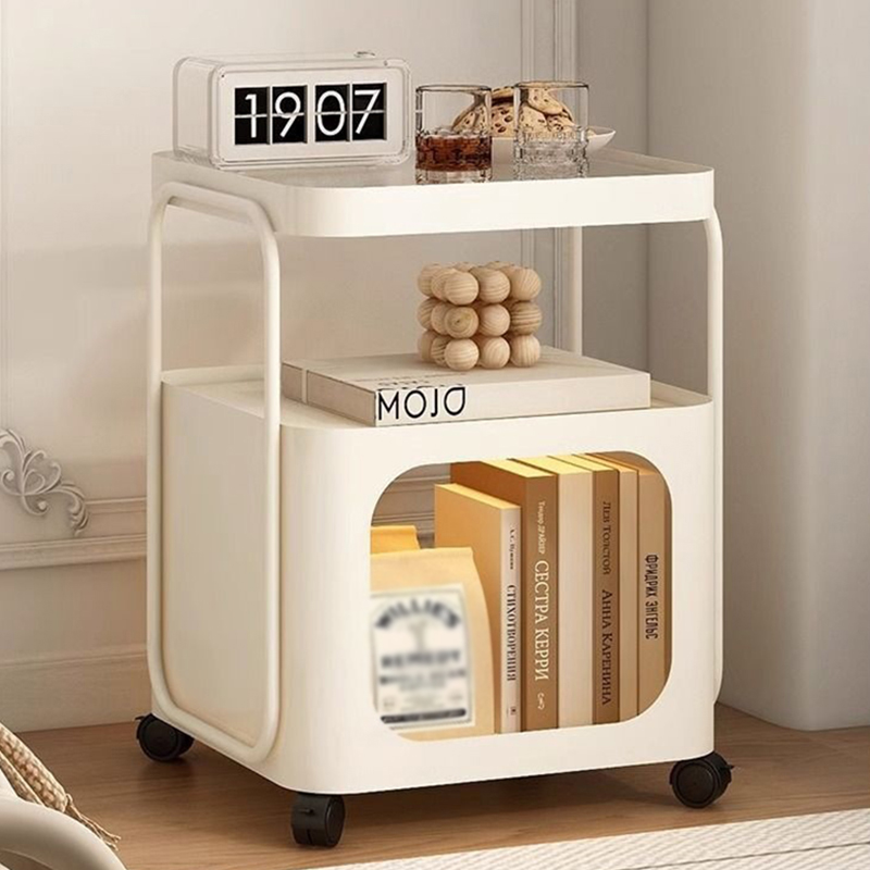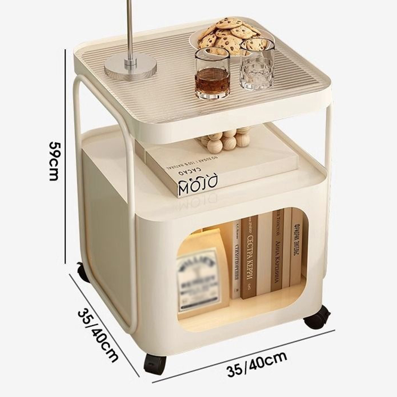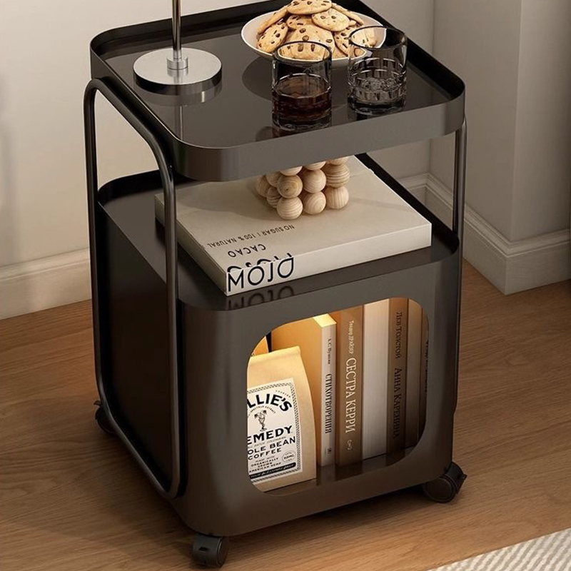 Toughened Glass & Carbon Steel Multifunction Side Table with caster & dustproof Solid PC