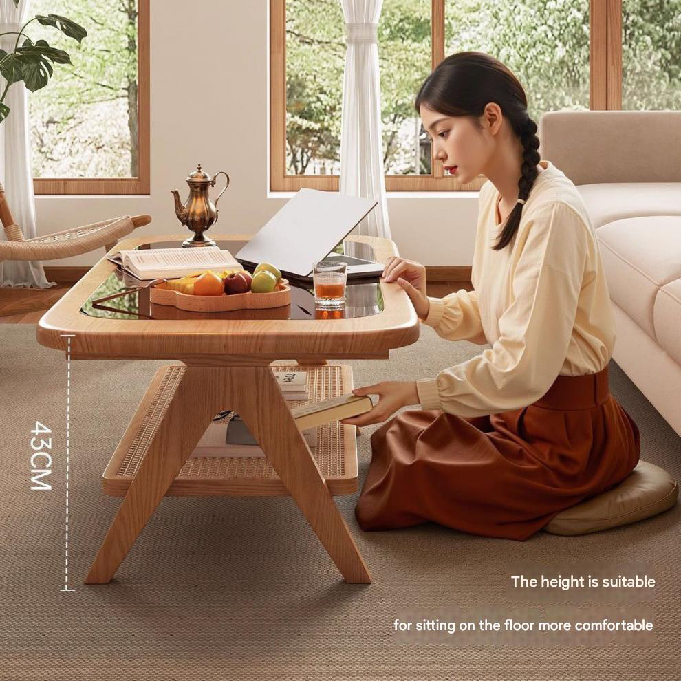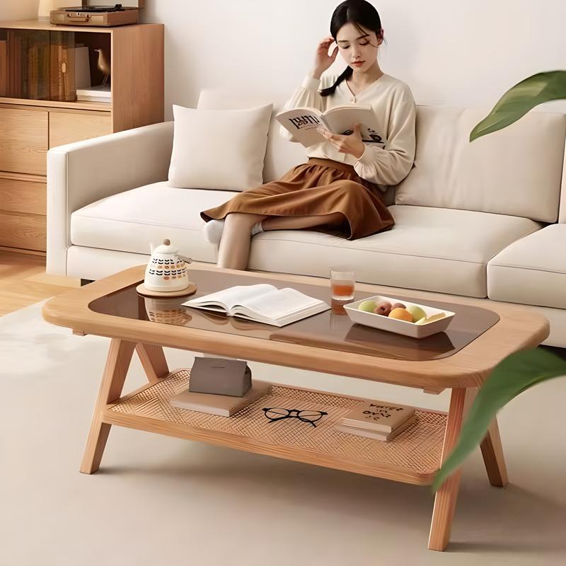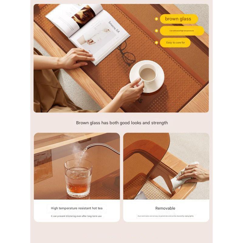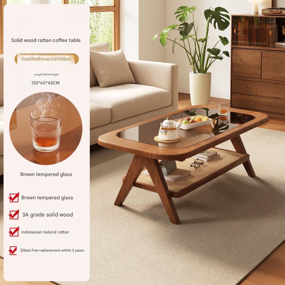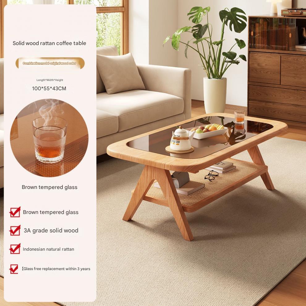 Toughened Glass & Rattan & Solid Wood Tea Table durable PC