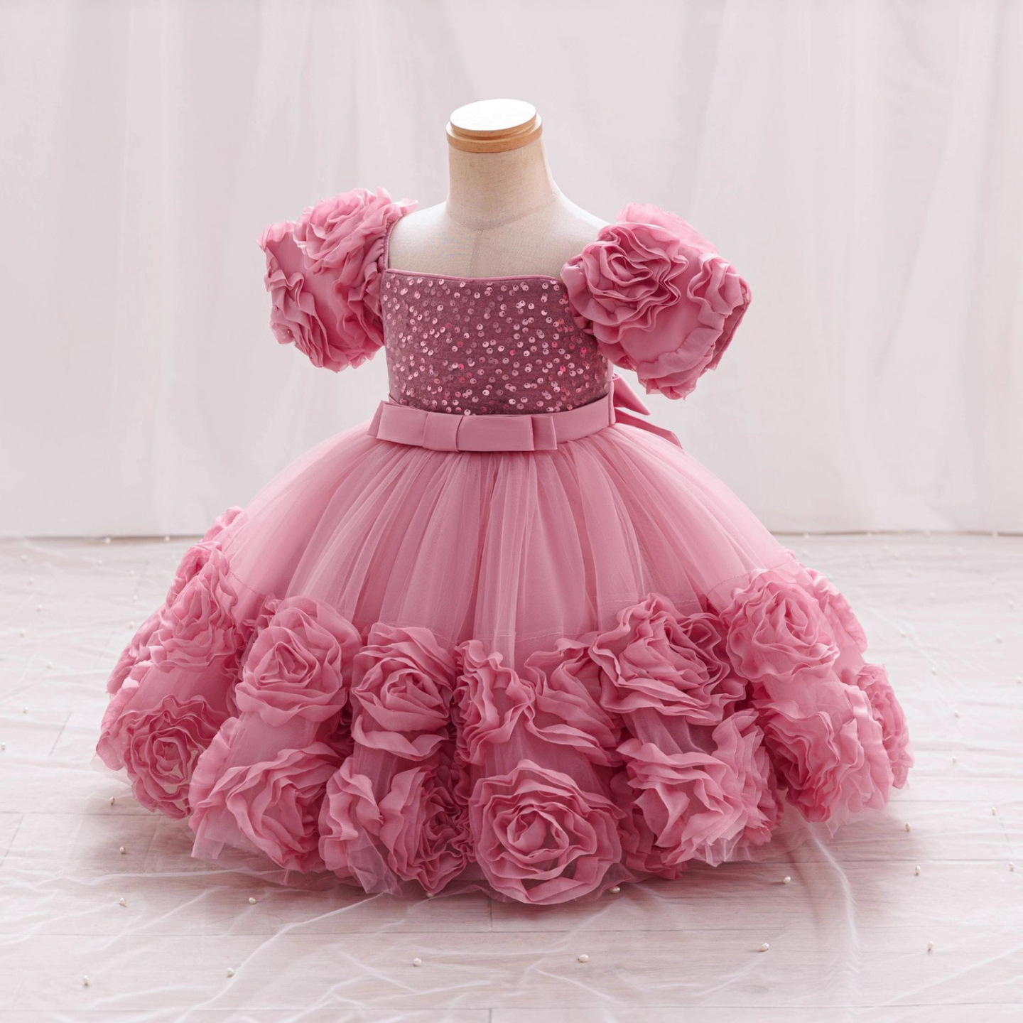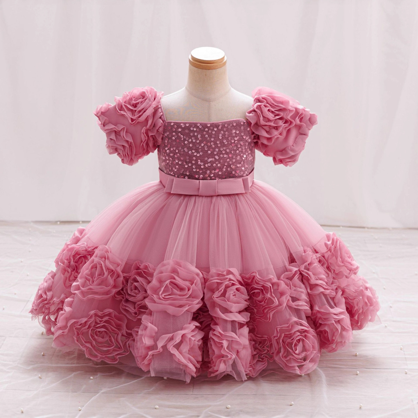 Viscose & Polyester Princess Girl One-piece Dress Sequin floral PC