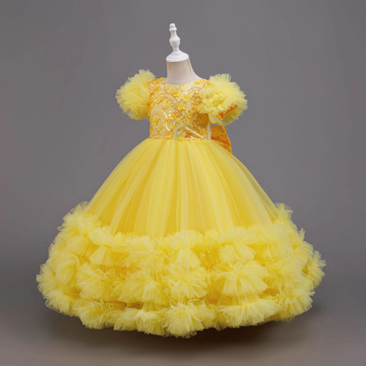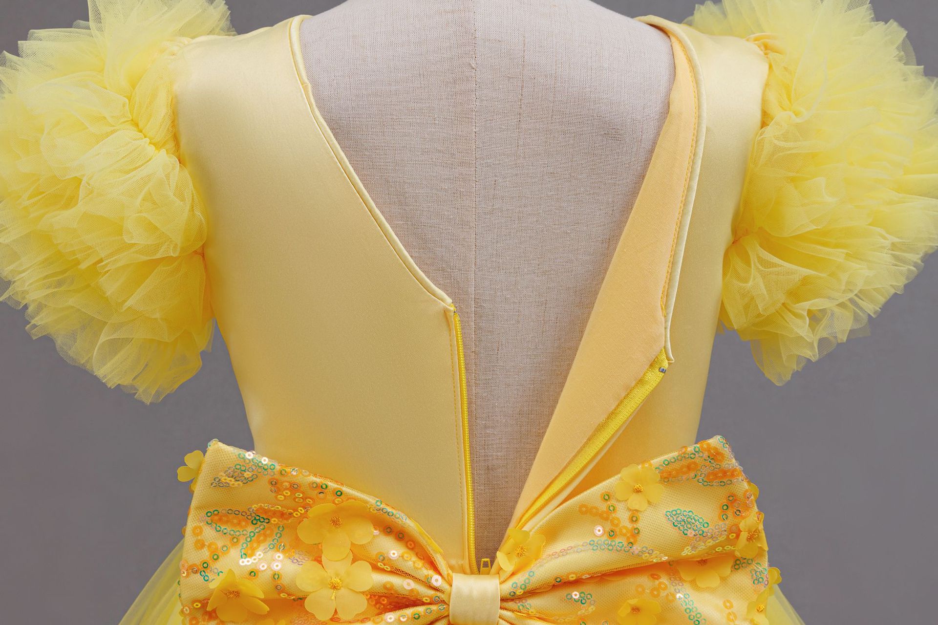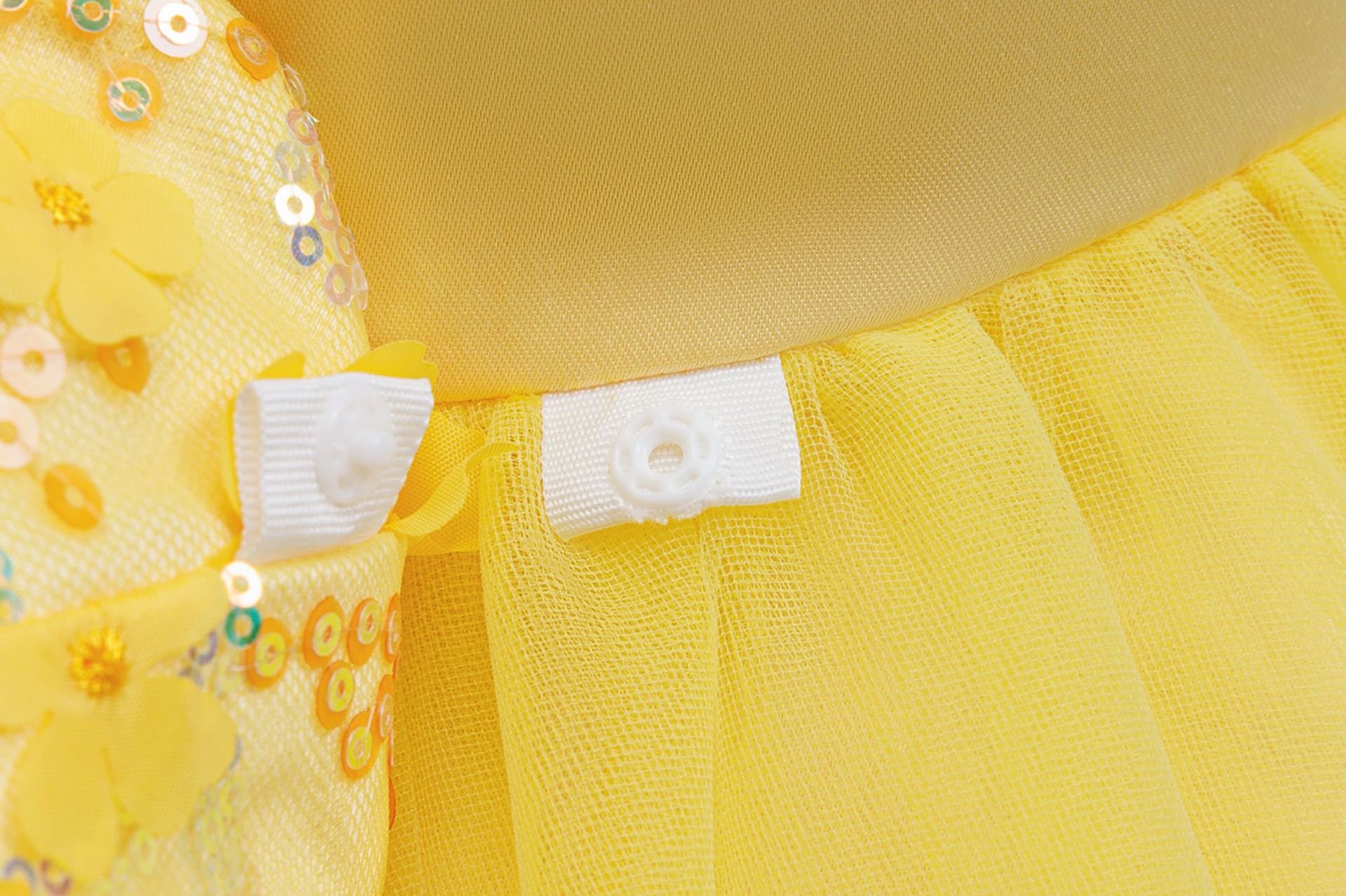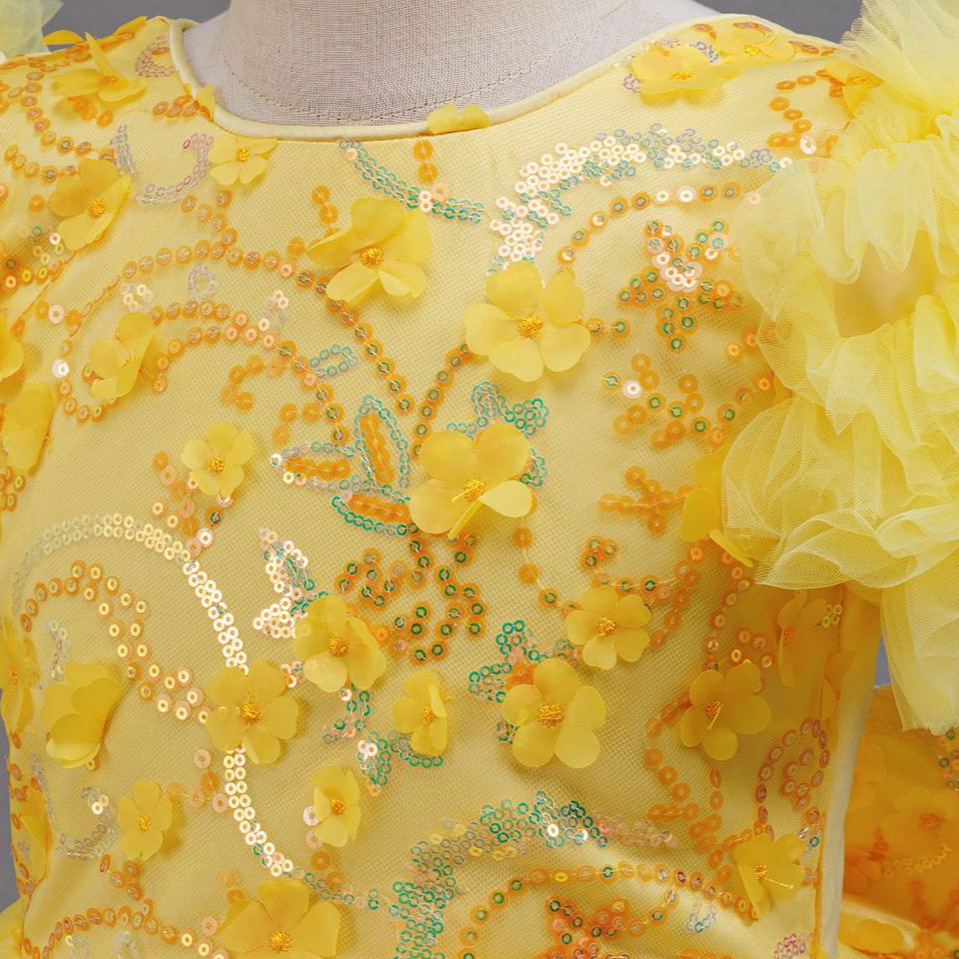 Viscose & Polyester Princess Girl One-piece Dress Sequin floral yellow PC