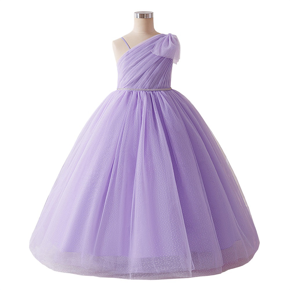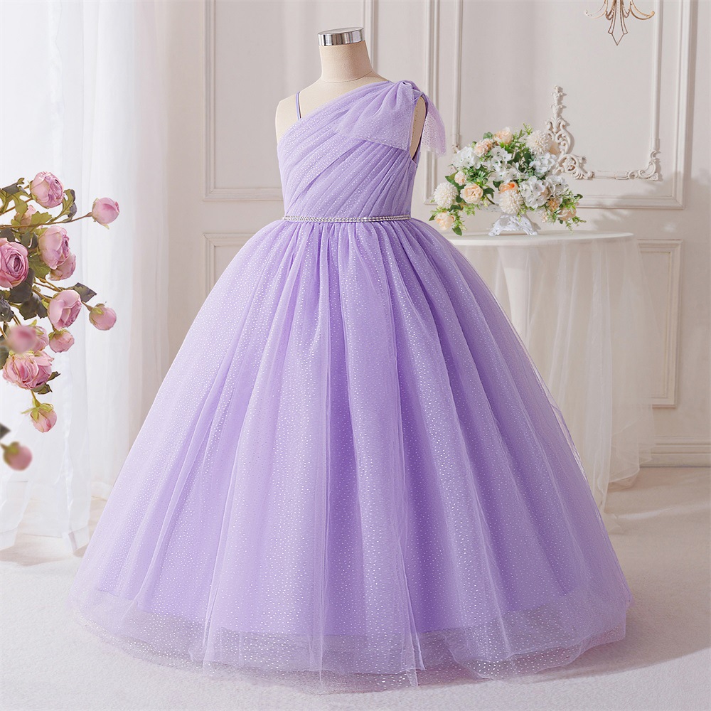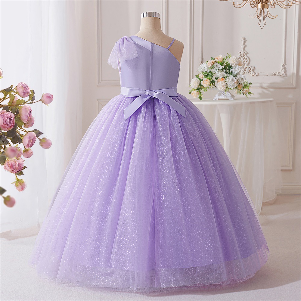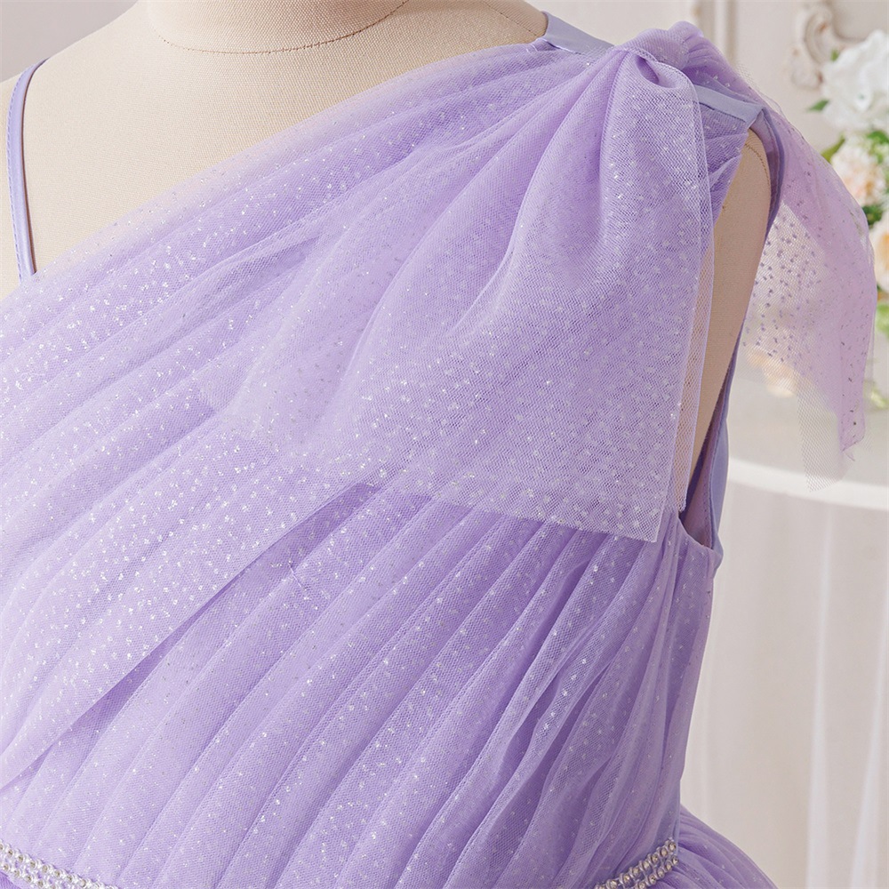 Viscose & Polyester & Cotton shoulder slope & Princess & Ball Gown Girl One-piece Dress Solid purple PC