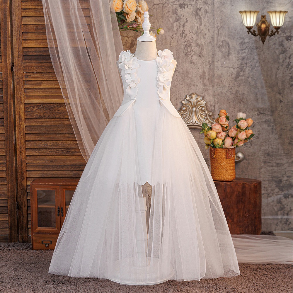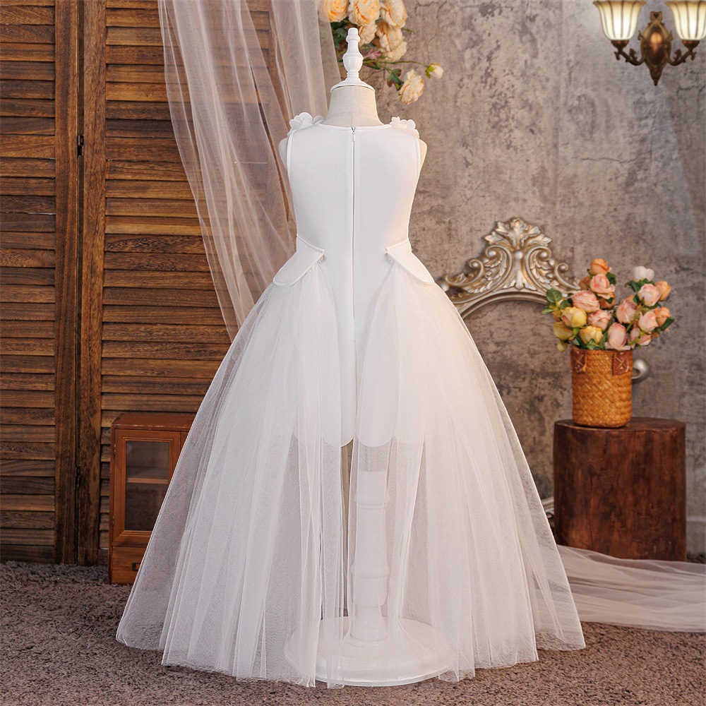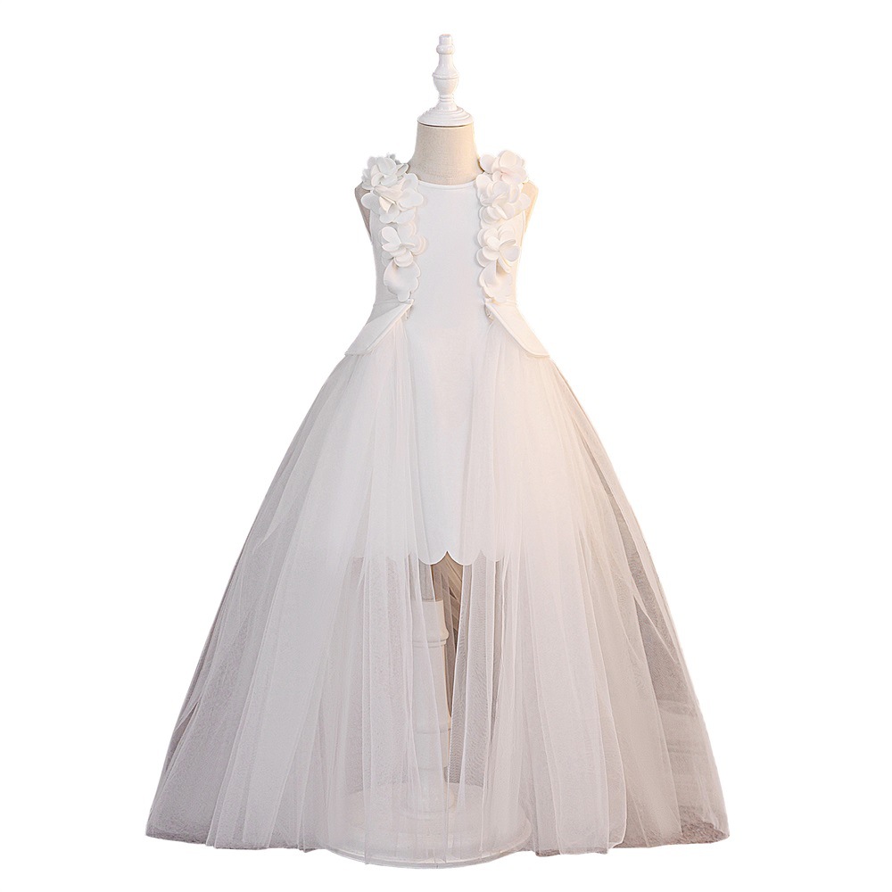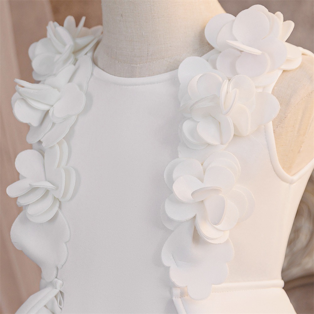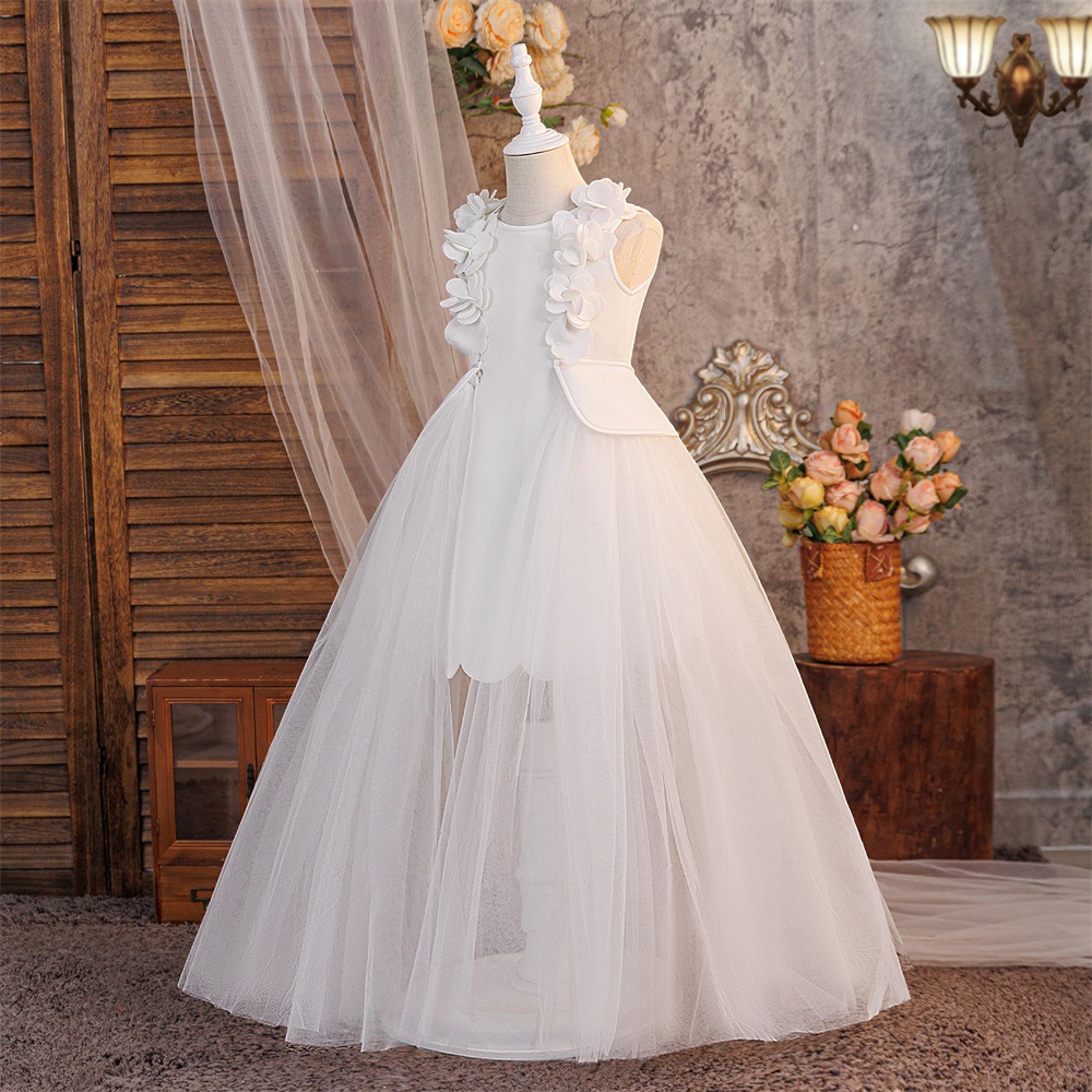 Viscose & Polyester & Cotton Princess Girl One-piece Dress Solid white PC