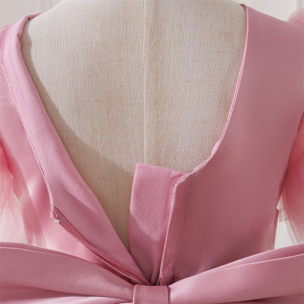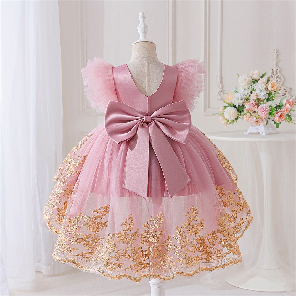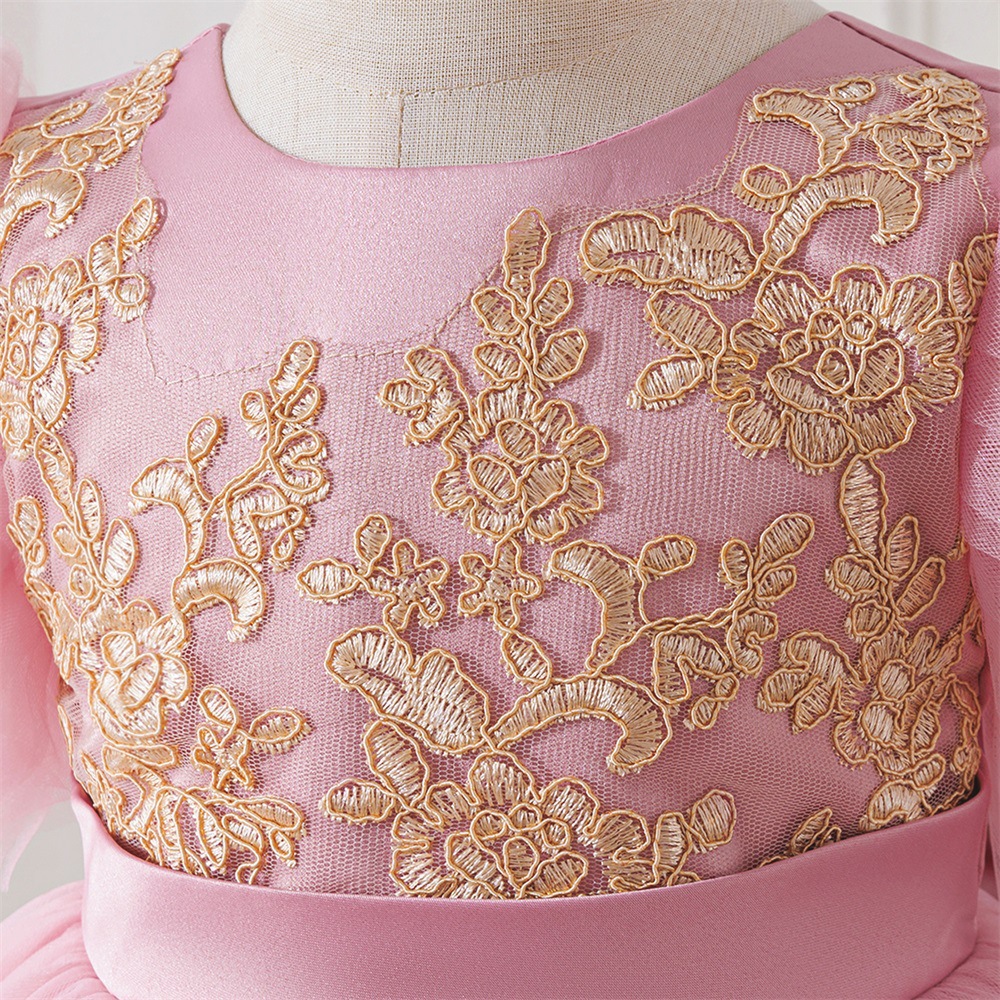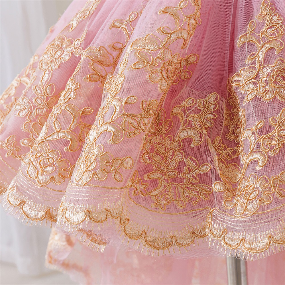 Viscose & Polyester & Cotton Princess Girl One-piece Dress & short front long back embroider pink PC