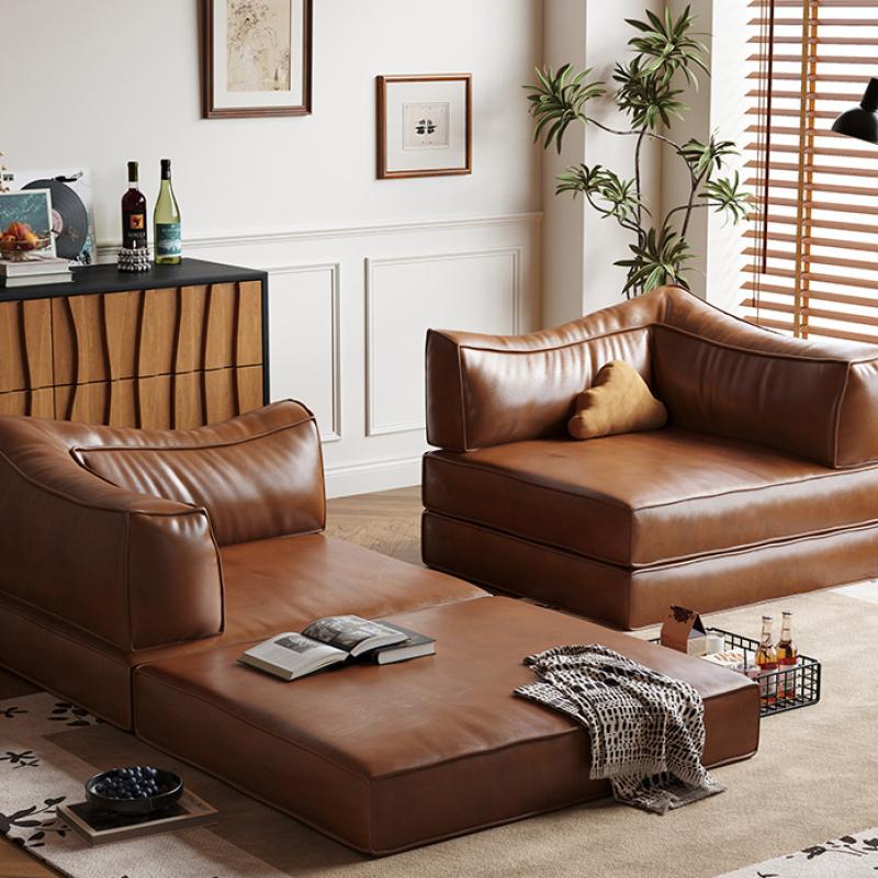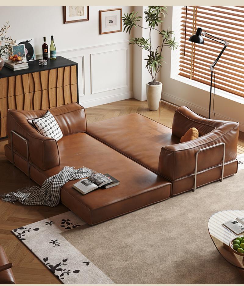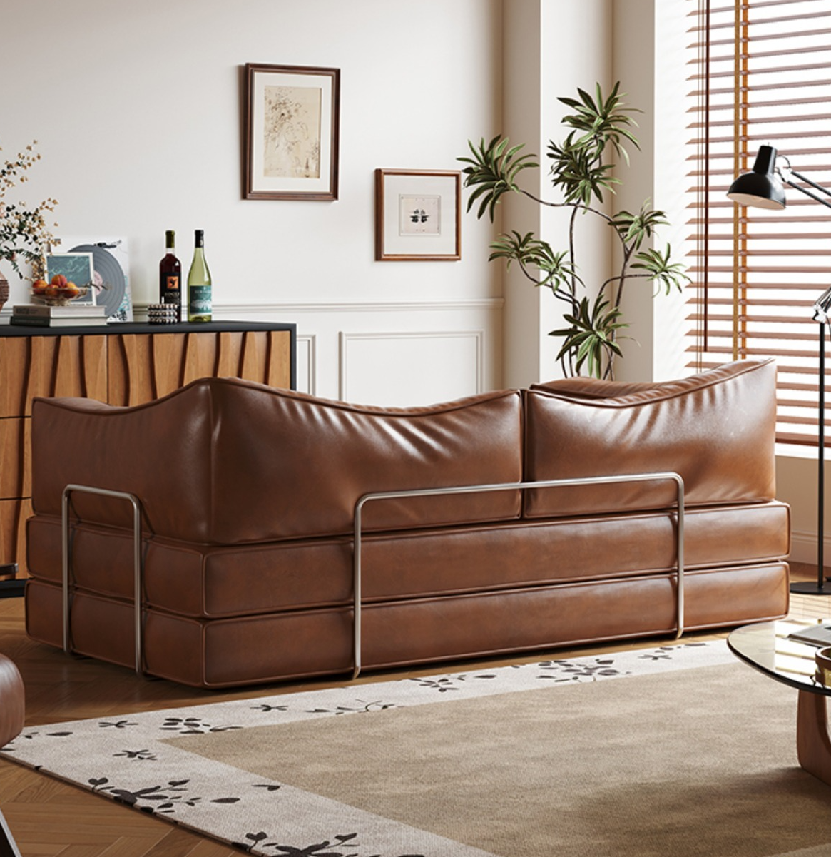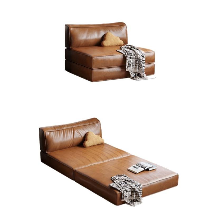 Waxed Leather & Stainless Steel & Sponge Soft Sofa Bed Solid brown PC