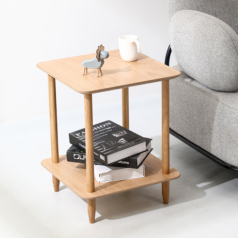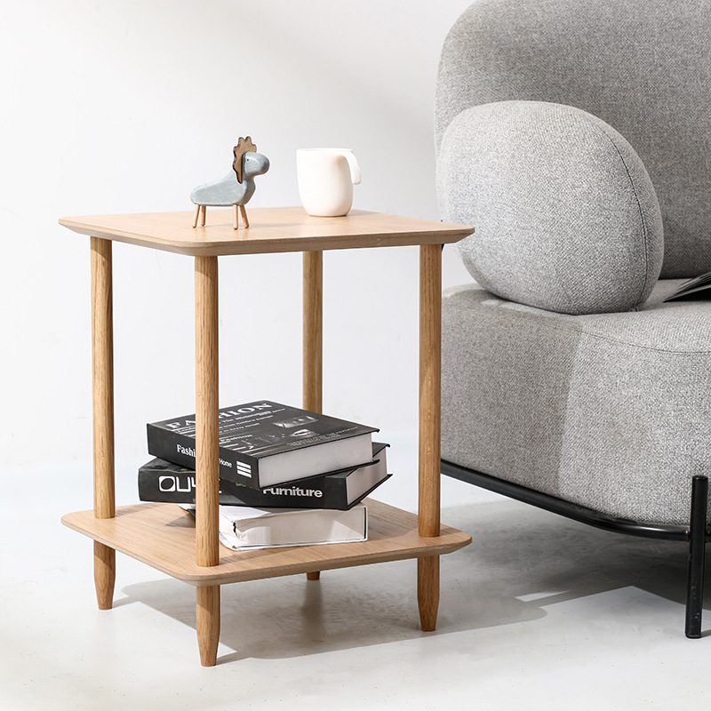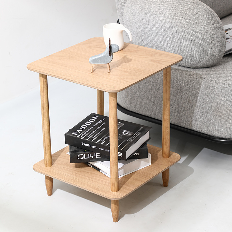 Solid Wood Sofa Side Table Simple Corner Table Square Double-Layer Small Coffee Table