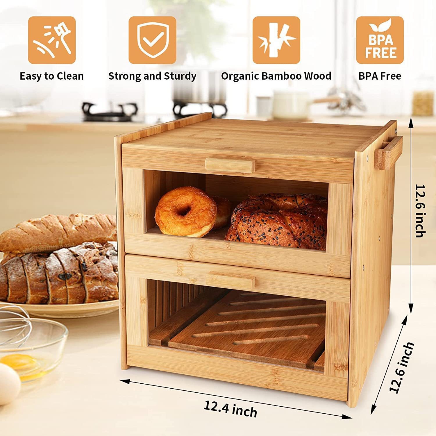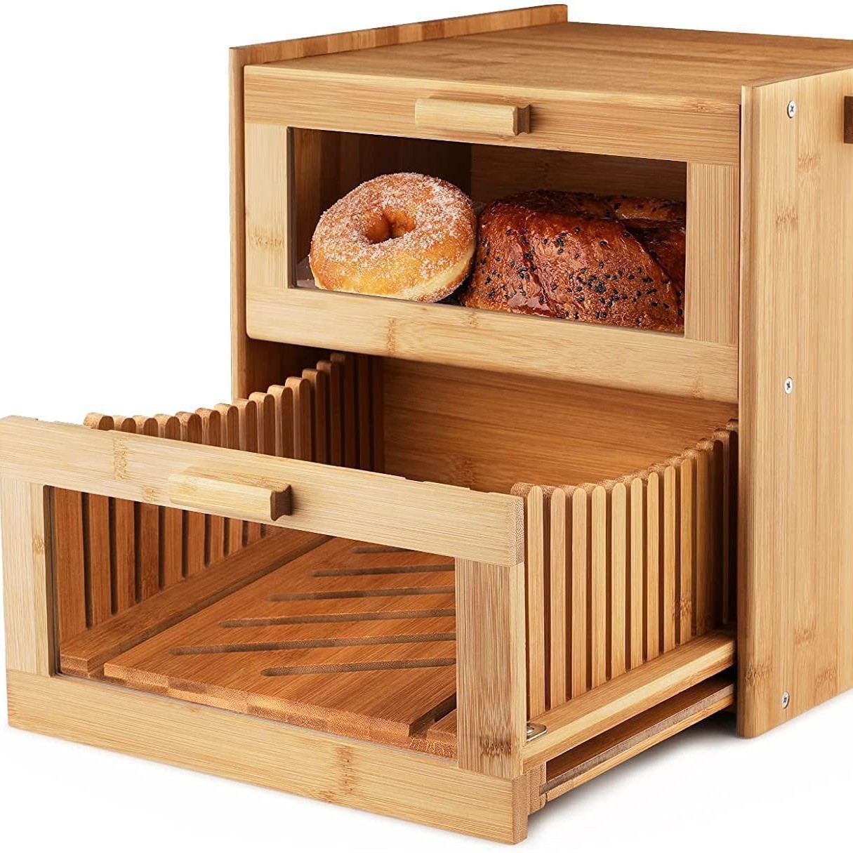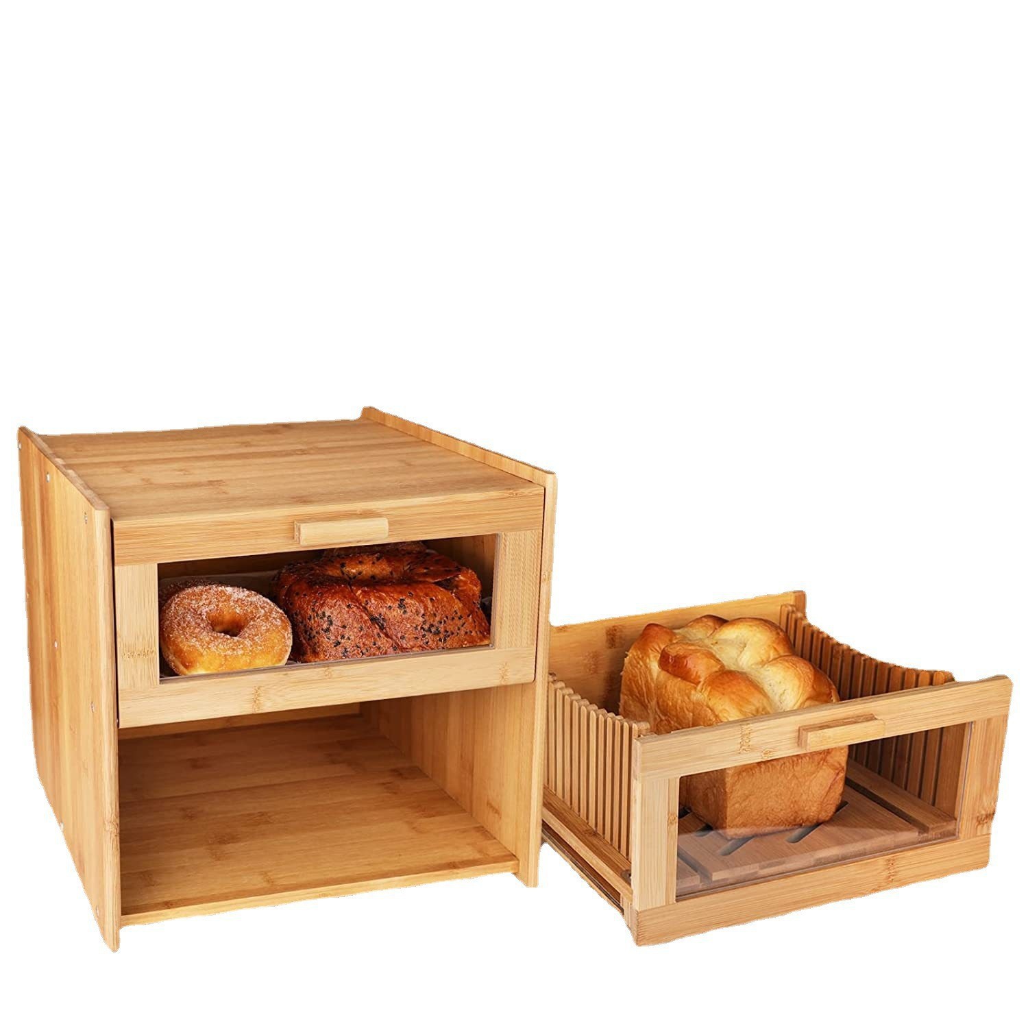 Wood Multifunction Food Storage Container Box double layer brown PC