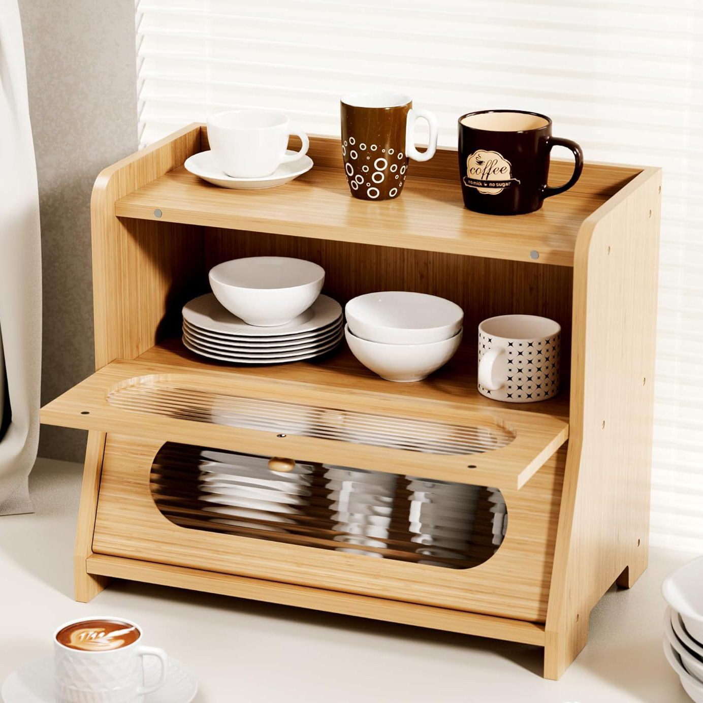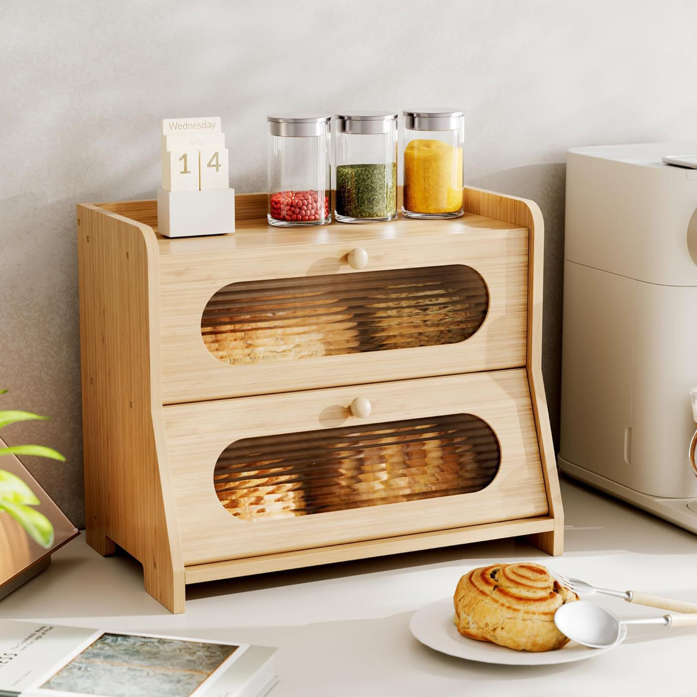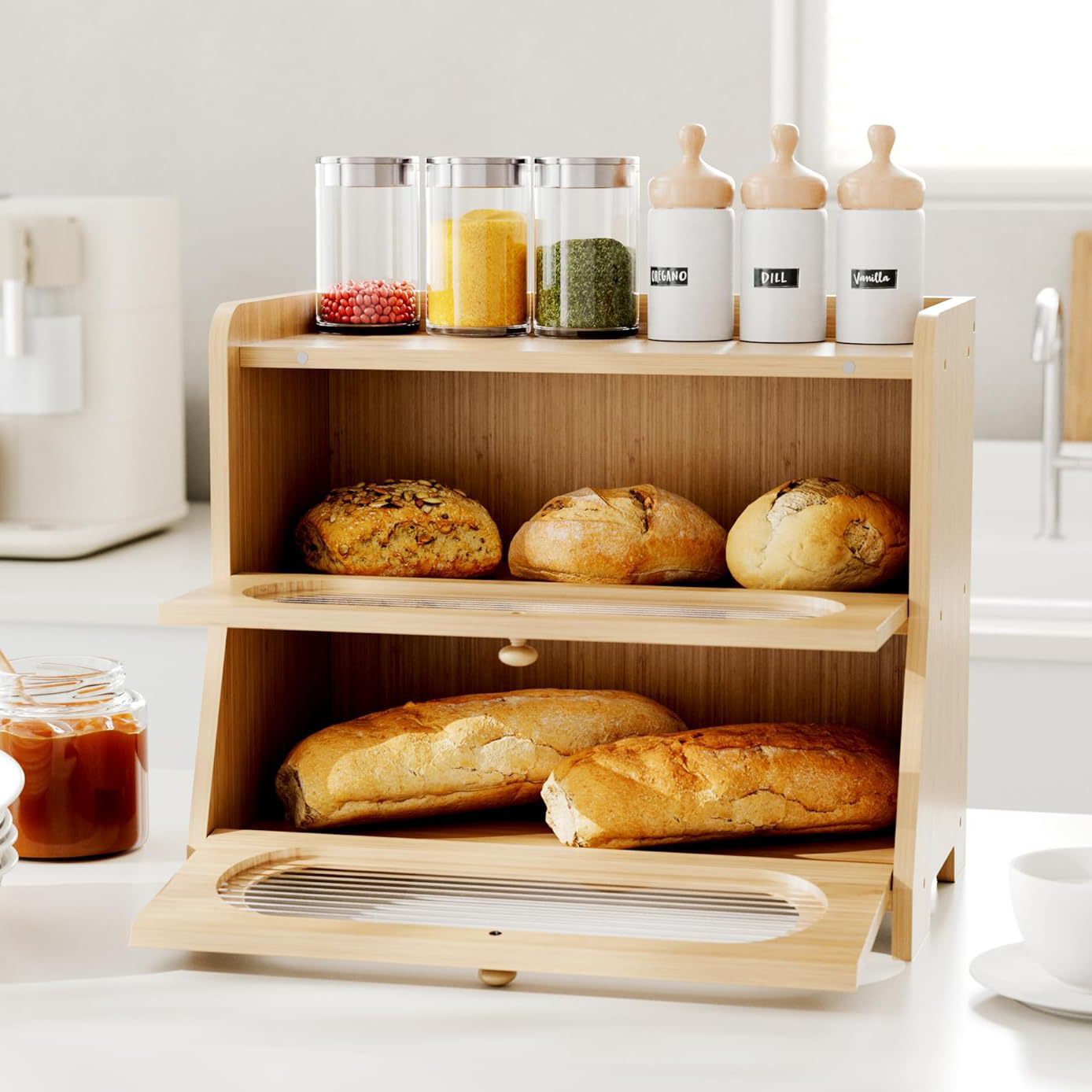 Wood Food Storage Container Box dustproof & double layer & transparent PC