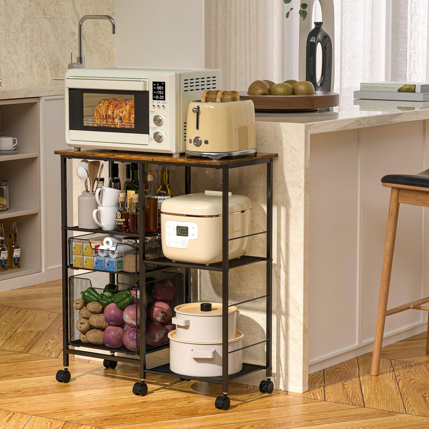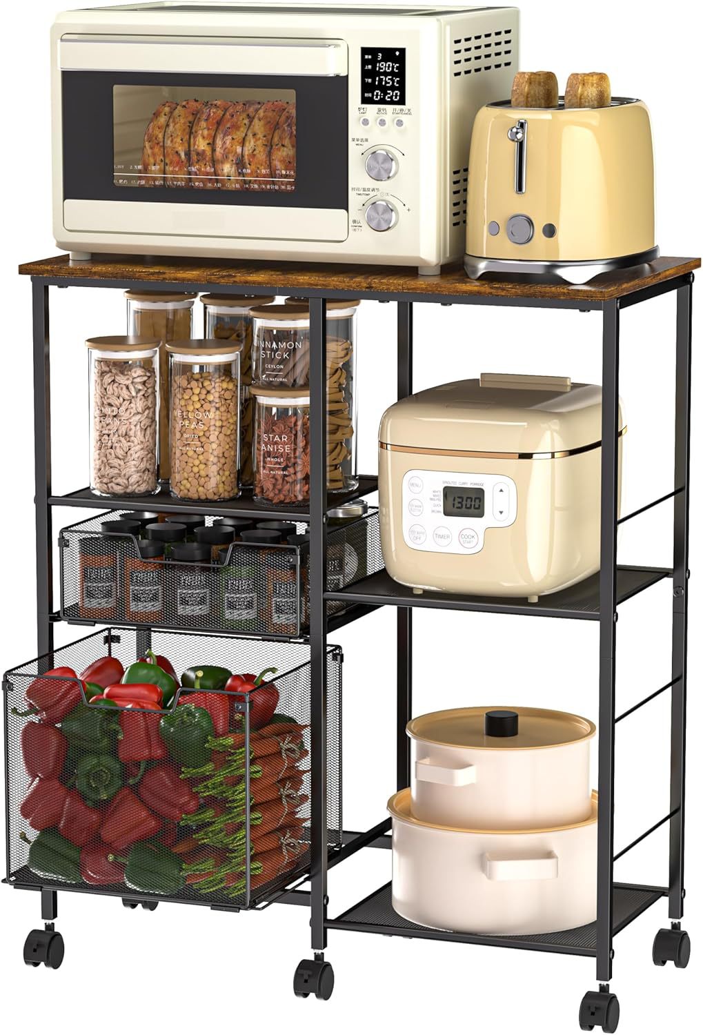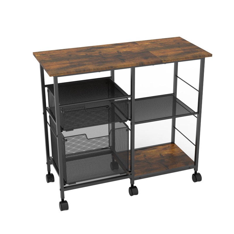 Wood & Iron Multilayer Shelf for Kitchen & with caster black PC