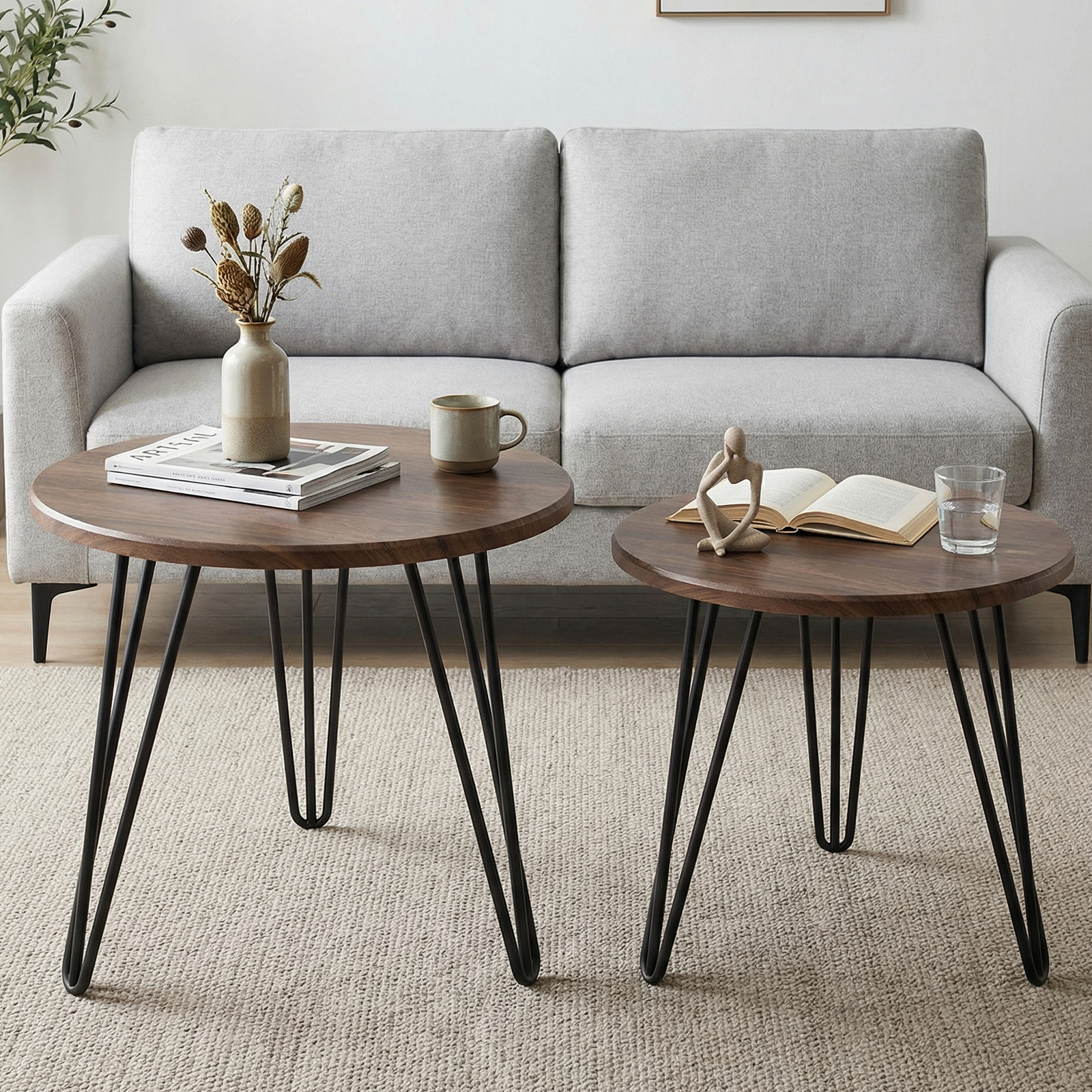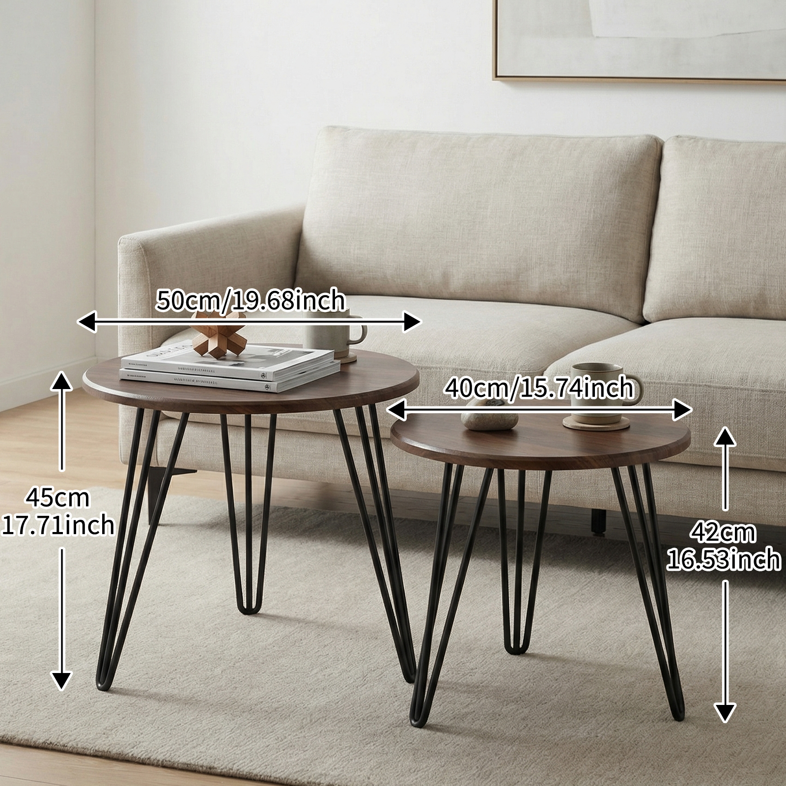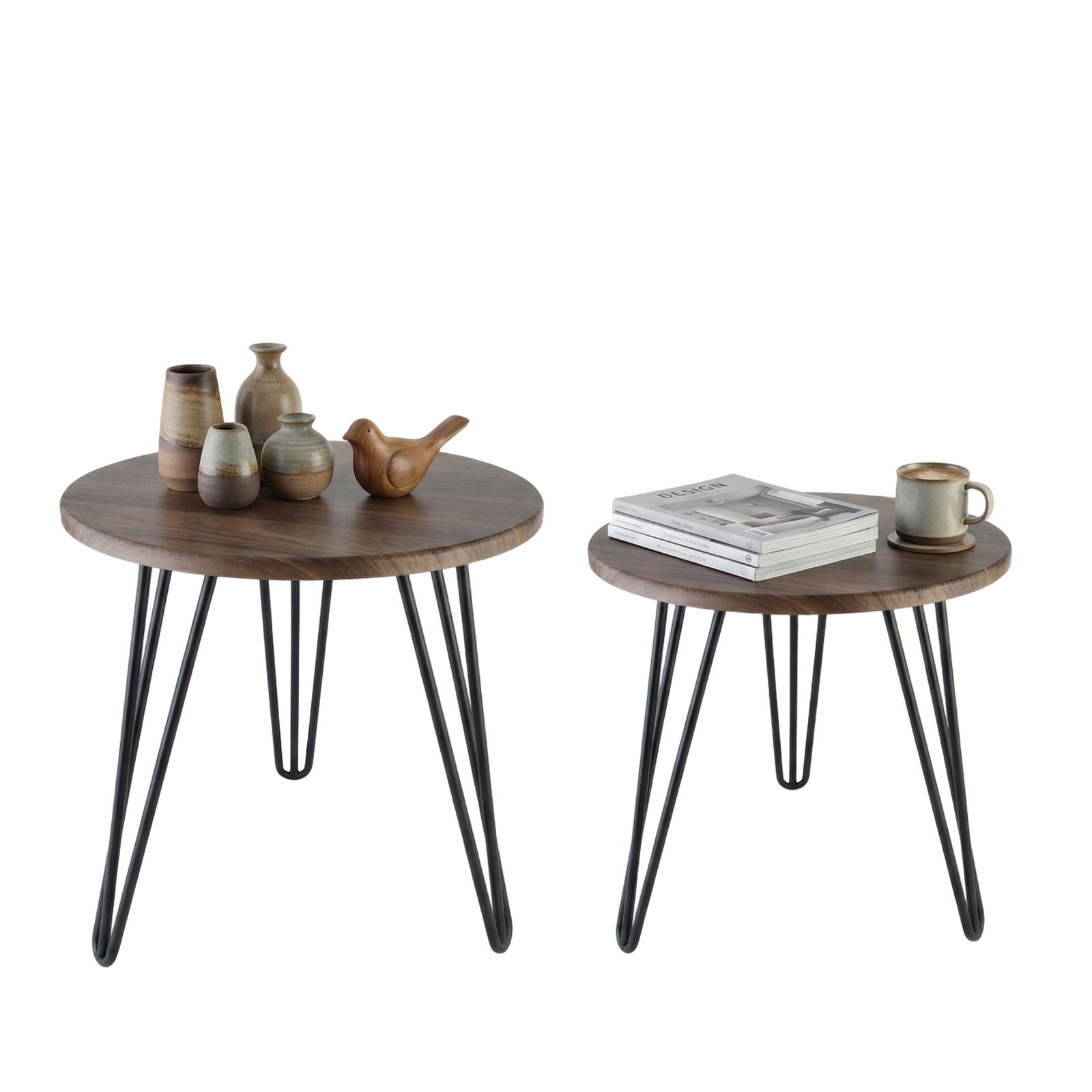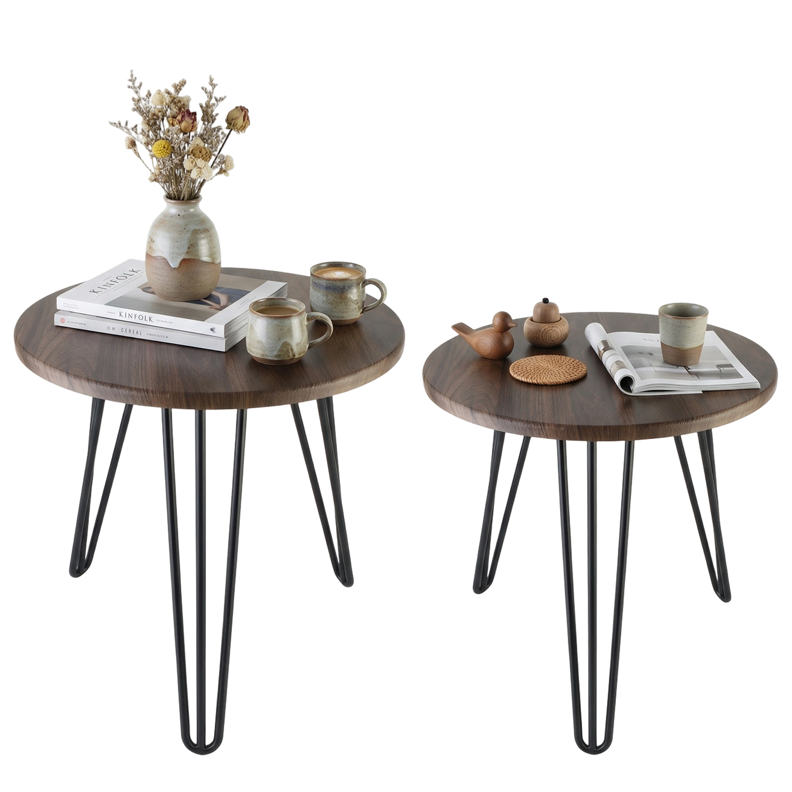 Wood Tea Table durable & two piece Iron Dark Brown Set
