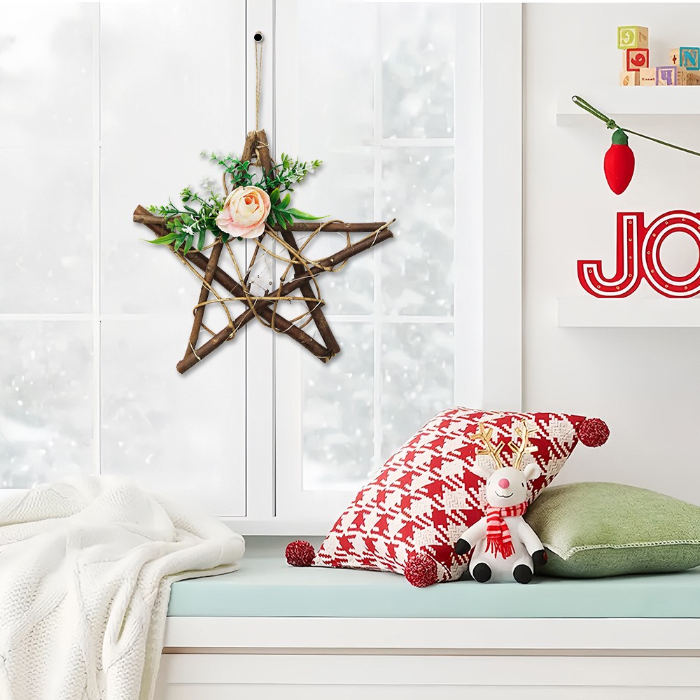 Five-pointed star wood ornament (warm lamp)Christmas tree wooden ornaments (warm lights)